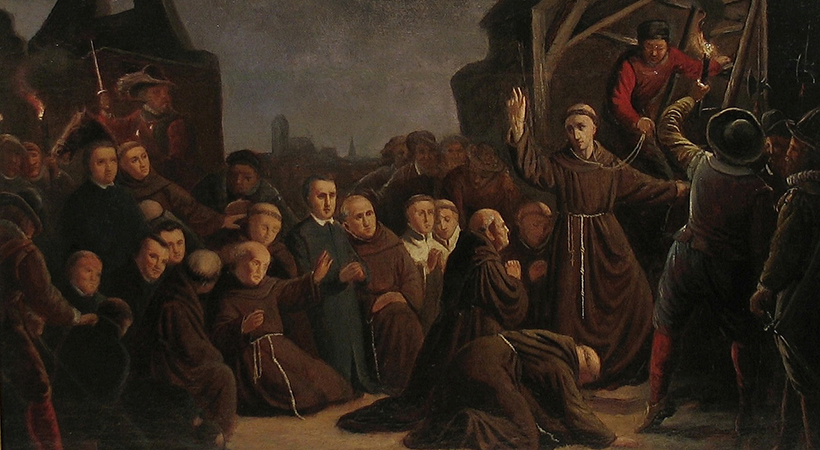 Em 1572, durante a guerra dos oitenta anos que os rebeldes holandeses mantinham contra a Espanha para realizar sua independência, a iconoclasia se estendia pelas dezessete Províncias dos Países Baixos; a luta entre luteranos e calvinistas mantinha o país em um estado de intransigência com a liberdade de culto religioso. Em abril de 1572, os mendigos do mar, corsários holandeses de confissão calvinista, tomaram Brielle, Flandres e outras cidades da zona, até então em poder da coroa espanhola. Em junho, Dordrecht e Gorcum caíram também em suas mãos.