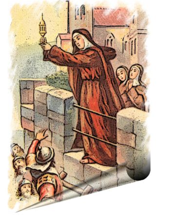 E, também, lemos no Processo de Canonização, nº 14: “A testemunha também disse que, temendo as Irmãs a chegada dos sarracenos, tártaros e outros infiéis, pediram à santa madre que insistisse muito diante do Senhor para que o mosteiro fosse defendido contra eles. E a madre santa lhes respondeu: ” Irmãs e filhas minhas, não fiquem com medo, porque o Senhor as defenderá. E eu quero ser a sua garantia. Se os inimigos chegarem até o mosteiro, coloquem-me diante deles”. Assim, pelas orações de tão santa madre, o mosteiro, as Irmãs e os objetos não sofreram dano algum”.