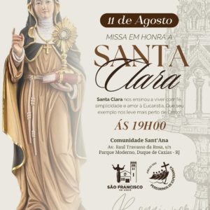 Santa Clara de Assis, admirada e conhecida como fiel discípula de São Francisco que, por sua vez, a iniciou no seguimento do caminho do Filho de Deus, foi a grande mulher orante, contemplativa e intercessora, recolhida com as suas Irmãs Pobres no estreito convento do Mosteiro de São Damião de Assis. Ela escolheu viver uma vida “segundo a perfeição do santo Evangelho” (RSC VI 3) e abraçou a santíssima vida de pobreza, morando à beira da estrada, fora da segurança dos muros de Assis. Clara jamais se isolou das aflições e dores dos homens e das mulheres do seu tempo: sejam as pessoas que habitavam na segurança fortificada da cidade de Assis, como as que, como ela, viviam do “lado de fora” a sorte dos pobres, leprosos, marginalizados e de todos que depositavam sua única e última confiança na providência de Deus.