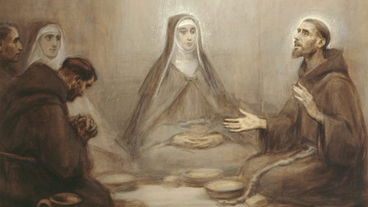 No mosteiro de São Damião, Clara e suas Irmãs rezam pela cidade. A prece e penitência contra as armas da guerra. Aquele lugar seguro de paz pode virar fortaleza de combate.