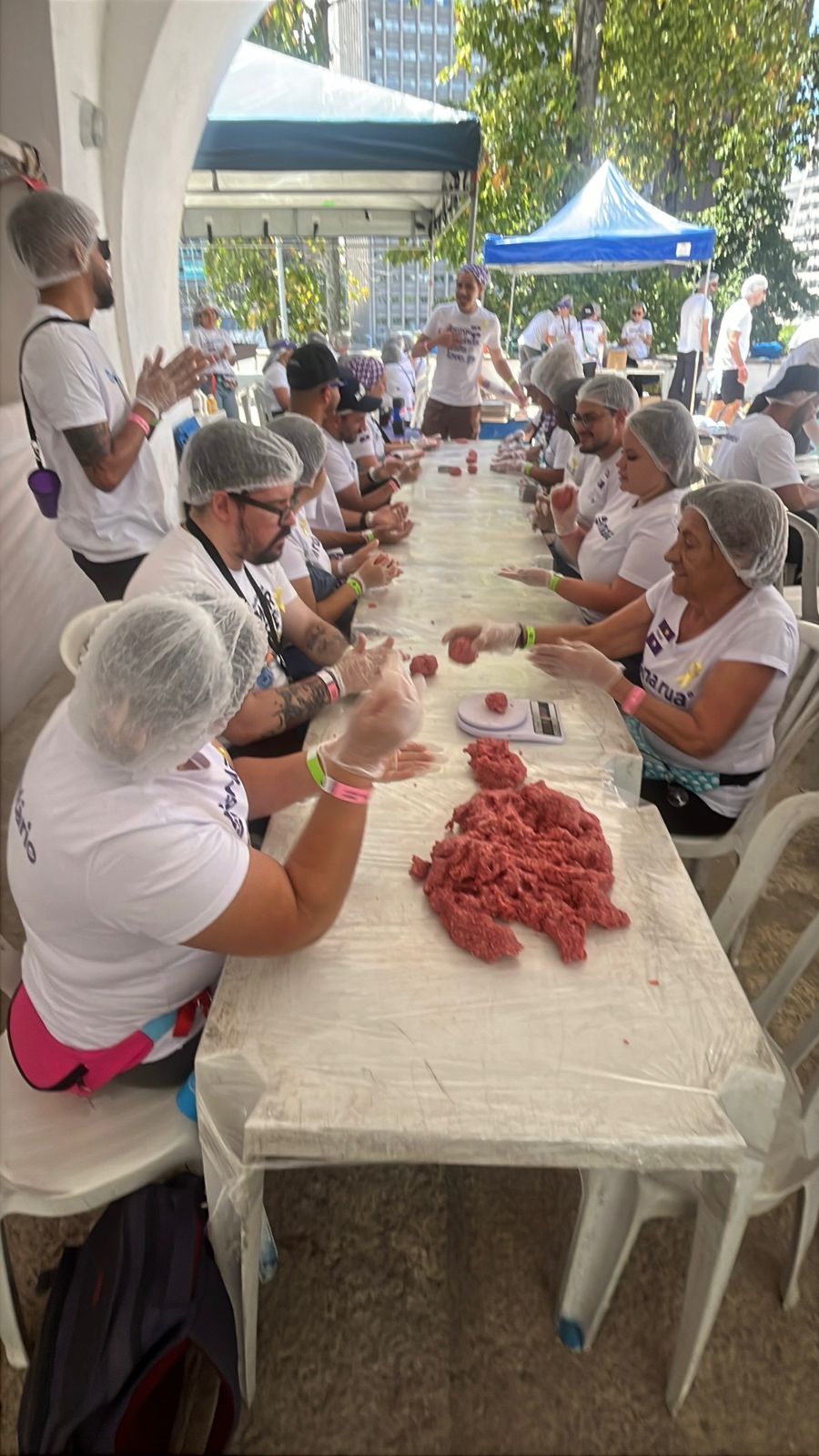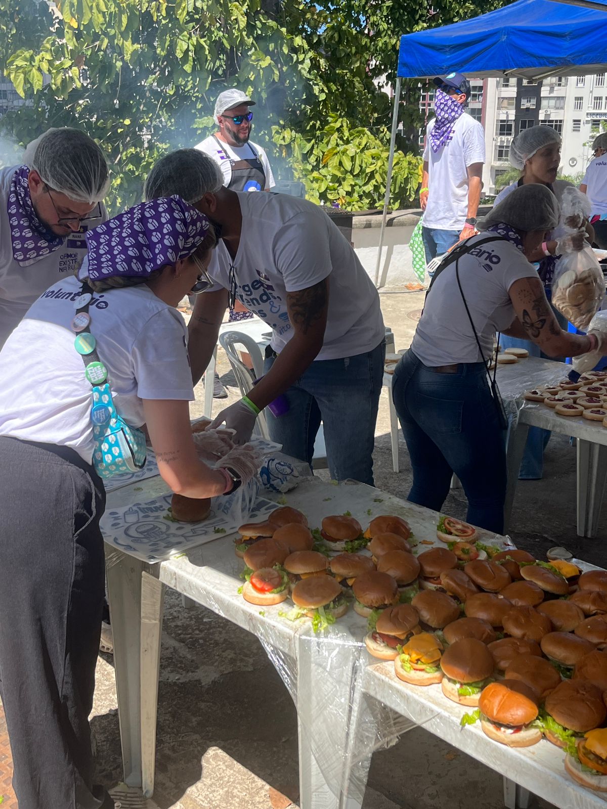 Foram 840 hamburgeres preparados e distribuídos, com linha de produção completa, desde a montagem do hamburger artesanal, o preparo na churrasqueira, a adição do alface, tomate, queijo e molhos, tudo manualmente contando com o ingrediente do carinho de cada envolvido na ação. Para completar, houve também distribuição de batata frita, preparada na hora, e sorvete de sobremesa. Complementando a hamburgada, a ação ofereceu ainda corte de cabelo, podólogo, atendimento odontológico, oficina de artesanato, brincadeiras e jogos, karaokê, dança, bingo e muita diversão. Água mineral e refrigerante também havia à vontade. Houve ainda o bazar, de onde cada a participante pode levar peças de roupa em excelente estado de conservação. A maioria dos voluntários veio de São Paulo com objetivo de tomar parte nas atividades. Havia também considerável número de voluntários vindos de Belo Horizonte e do próprio Rio de Janeiro.
