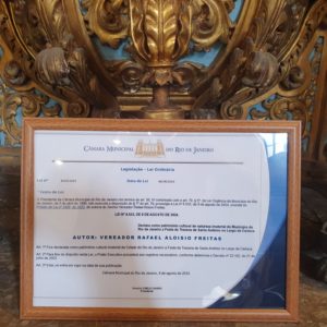 Frei Walter agradeceu a arquiteta Ane Calixto, voluntária que auxiliou na regularização do projeto do elevador junto à Prefeitura do Rio e que agora assume, com uma equipe, a restauração do Convento. Também agradeceu ao museólogo Frei Róger Brunorio, profundo conhecedor da história do local, e mencionou a revitalização do órgão do Convento, conduzida por Frei Lauro Both.