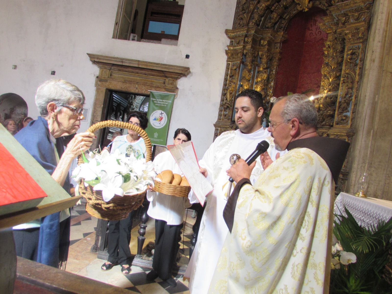 A 343ª Trezena de Santo Antônio teve início às 10h do sábado, dia 31 de maio, celebração da Festa da Visitação de Nossa Senhora. A Igreja estava repleta de fiéis e devotos que vieram participar da abertura de uma das Trezenas mais antigas e tradicionais do país. O tema deste ano, “Santo Antônio e as Criaturas louvam juntos o Criador”, tem inspiração no jubileu dos 800 anos do Cântico das Criaturas, escrito por São Francisco de Assis, de quem Santo Antônio foi irmão na Ordem Franciscana. O pregador convidado especialmente para a ocasião foi Frei Odécio Lima de Souza, Frade da Custódia do Sagrado Coração de Jesus e Capelão reformado da Marinha do Brasil. Como gesto simbólico de acolhida e investidura, logo antes da primeira pregação, o Guardião da Fraternidade, Frei Walter Ferreira Junior entregou solenemente o Evangeliário a Frei Odécio, pronunciando as seguintes palavras: “Recebe este Evangeliário como 343° pregador da Trezena de Santo Antônio neste vestuto Convento a ele dedicado. Que o Santo Evangelho inflame teu coração e tua língua para que, como o fogo do Espírito Santo  inflamava Santo Antônio, que nessa Trezena muitos se convertam a Cristo e milagres de amor ornamentem este santo e piedoso exercício da Trezena de Santo Antônio do Largo da Carioca que te confiamos como pregador”.