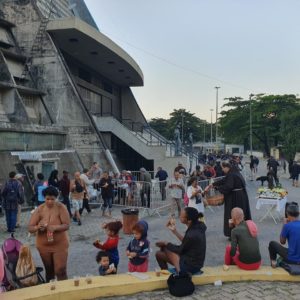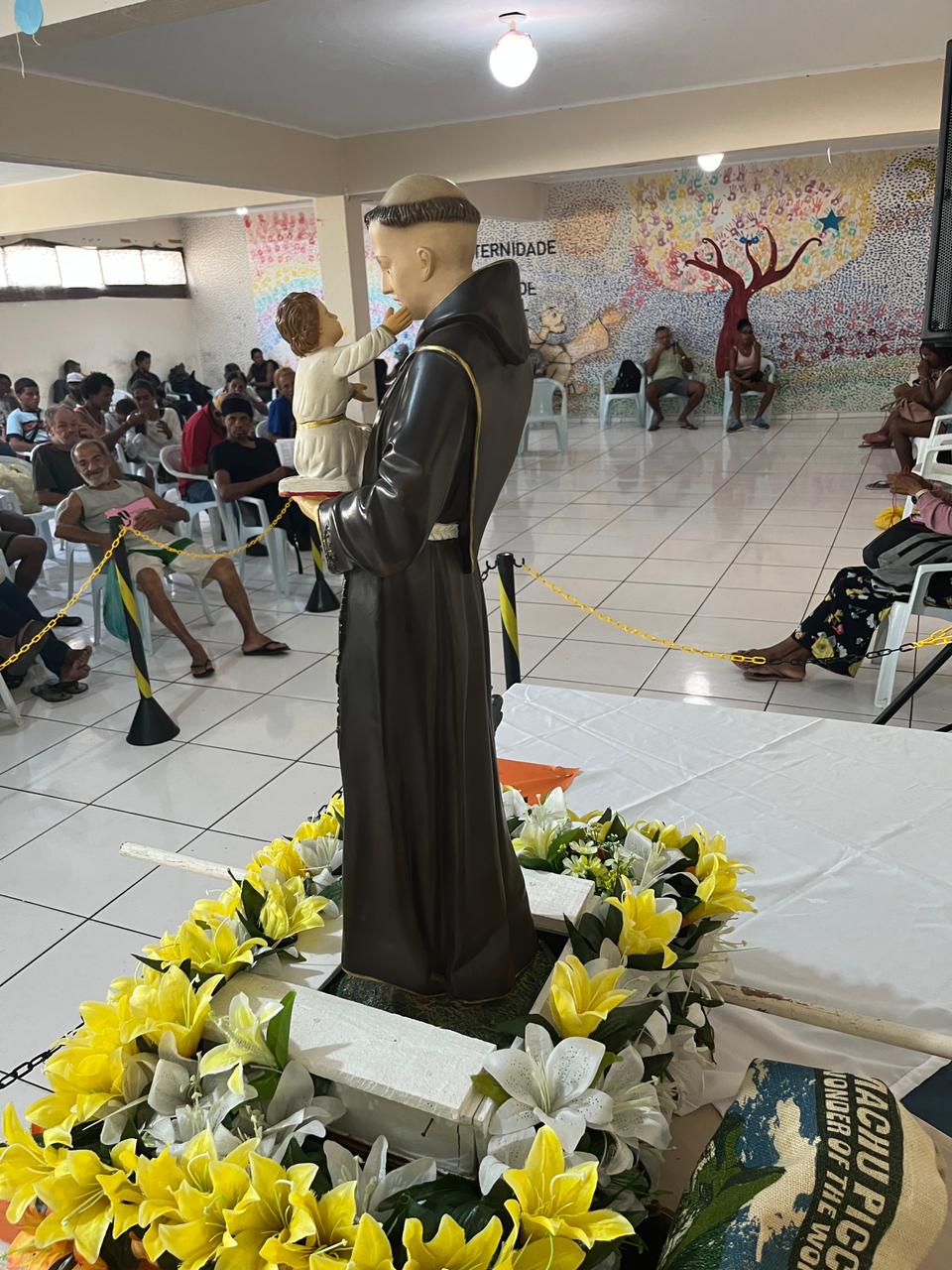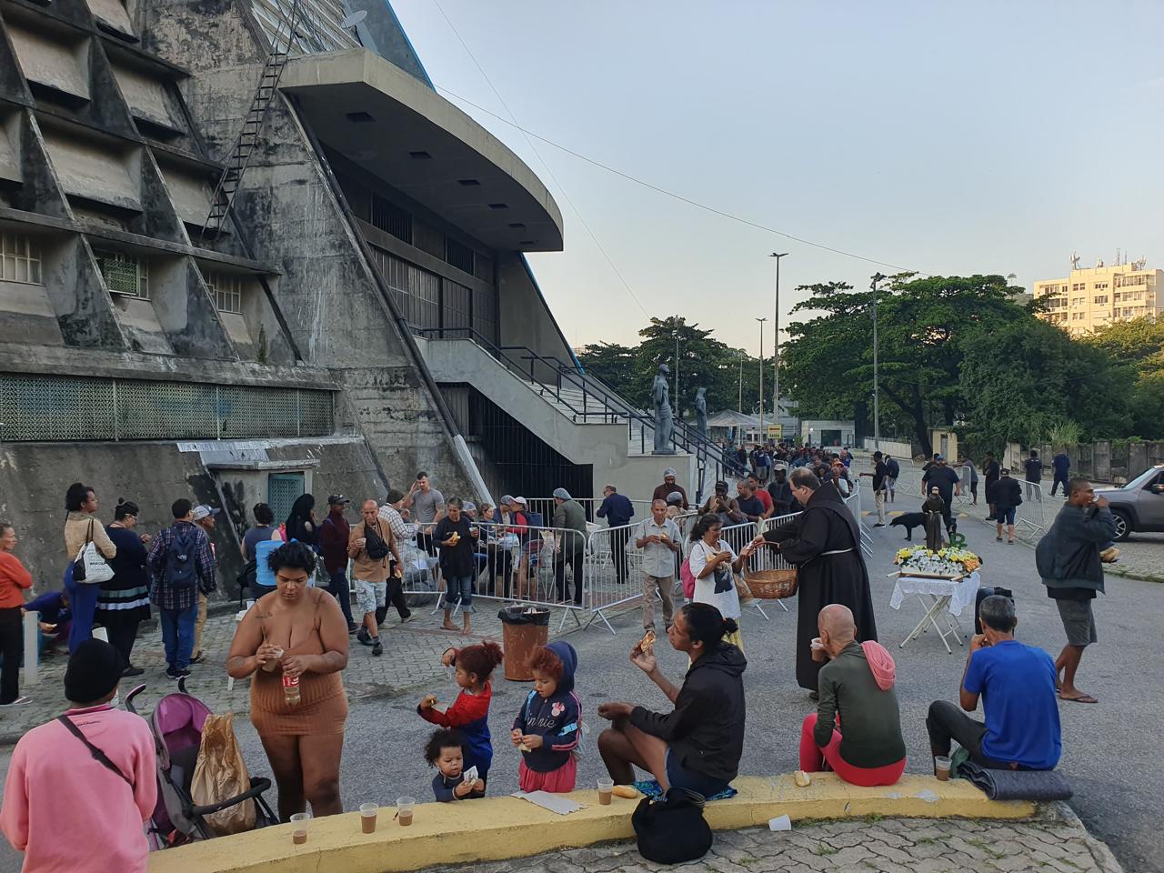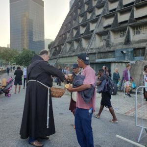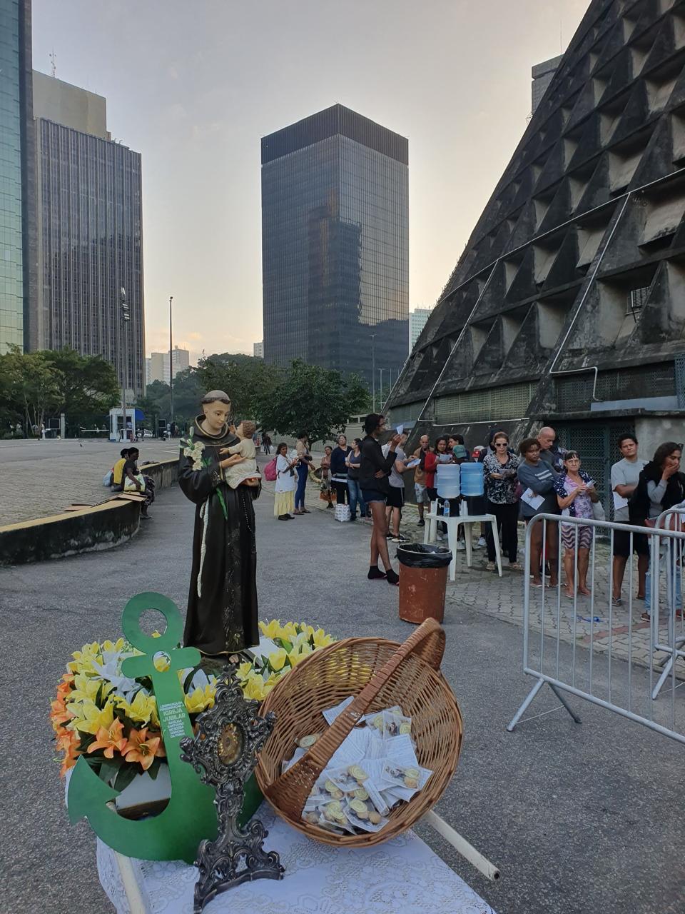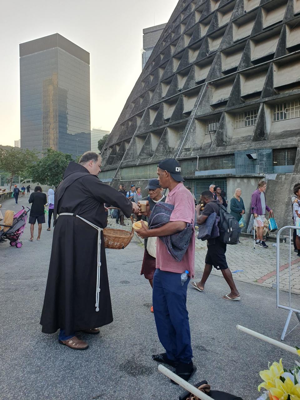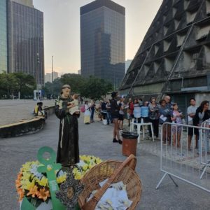 No domingo, 1º de junho, a imagem peregrina chegou às 7h na Catedral Metropolitana de São Sebastião, vizinha ao Convento. Junto à igreja, todos os domingos, é servido um café da manhã a cerca de 500 pessoas em situação de Rua, inclusive mulheres e crianças. Desta vez além da costumeira oração do Pai nosso, houve um breve momento de prece e pedido da intercessão a Santo Antônio, recordando a proximidade que o santo nutria para com os pobres. Além de receber a bênção e o café da manhã, os participantes também levaram consigo o tradicional pãozinho de Santo Antônio. No almoço, foi a vez da imagem visitar a Casa Franciscana, na Rua Visconde Gávea, aos pés do morro da Providência, onde diariamente almoçam cerca de 300 pessoas em situação de rua. Mais uma ocasião de prece e manifestação de proximidade aos que mais sofrem.