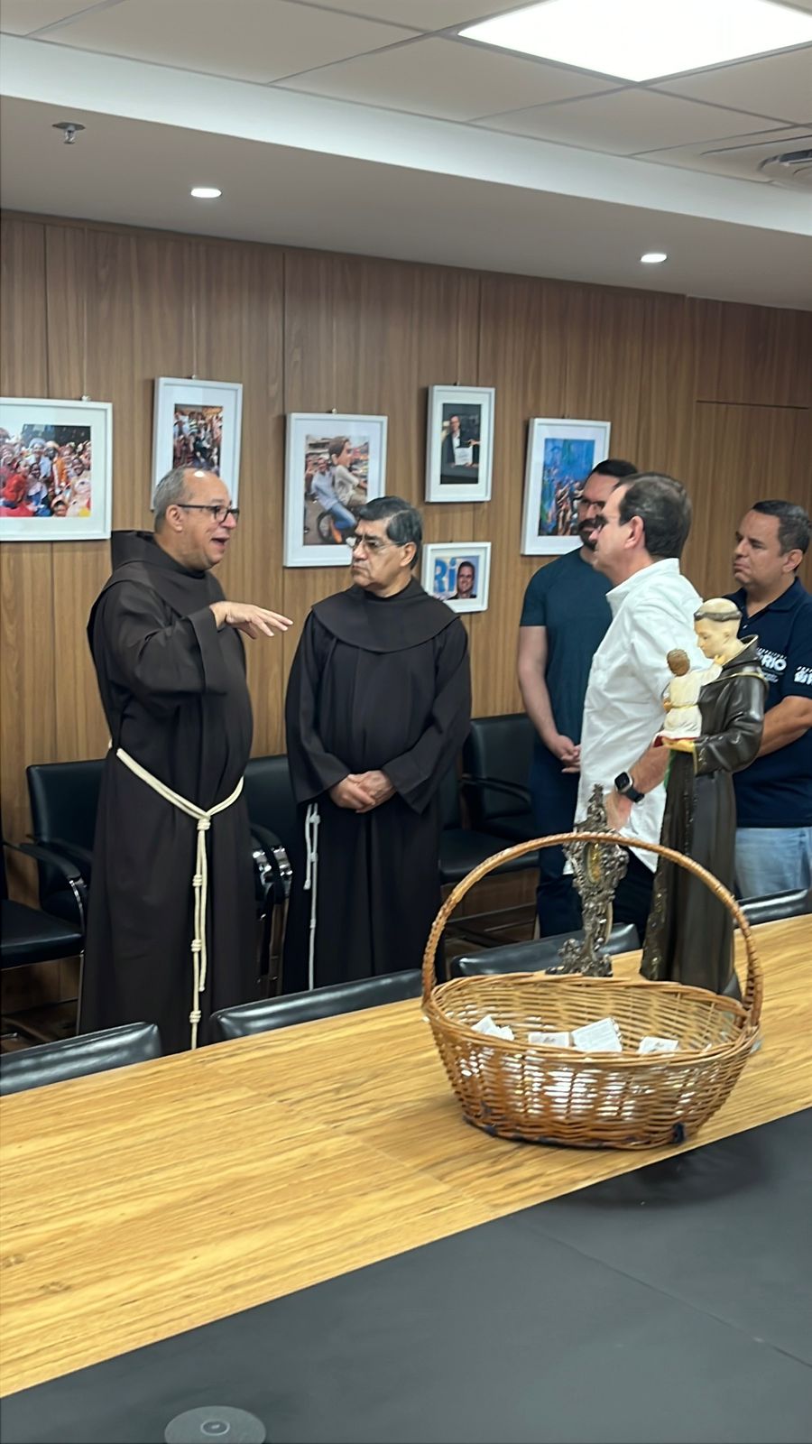 Recordando o tema da Trezena 2025, o Vigário provincial, Frei Gustavo Medella, exaltou as belezas naturais do Rio e recordou o compromisso de todos, poder público, Igreja e sociedade na promoção do cuidado e da superação de tudo aquilo que destrói a natureza e a dignidade humana. Ao final, o prefeito e seus assessores receberam a benção com a relíquia e também ganharam o tradicional pãozinho de Santo Antônio como lembrança da visita.