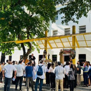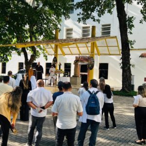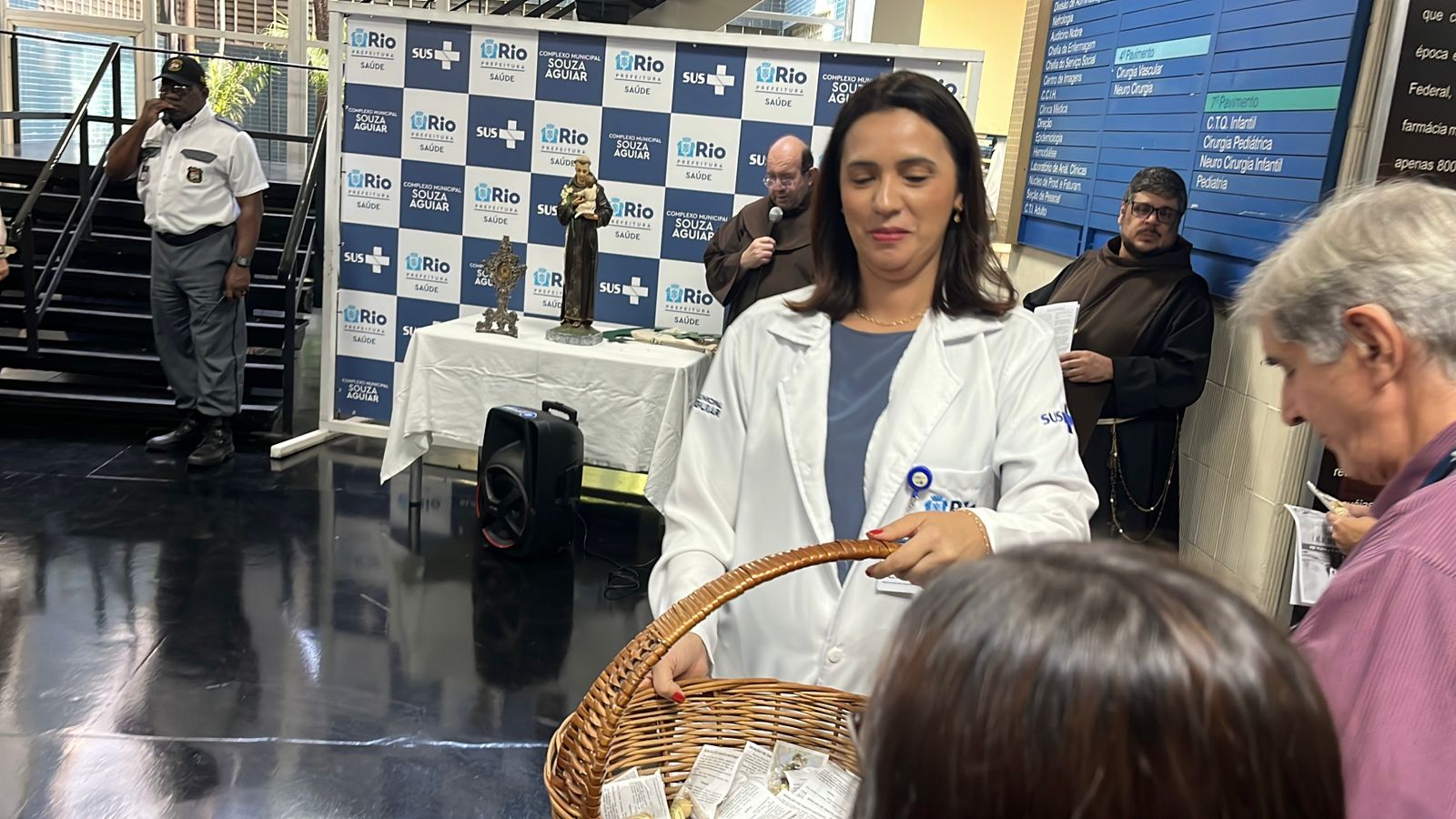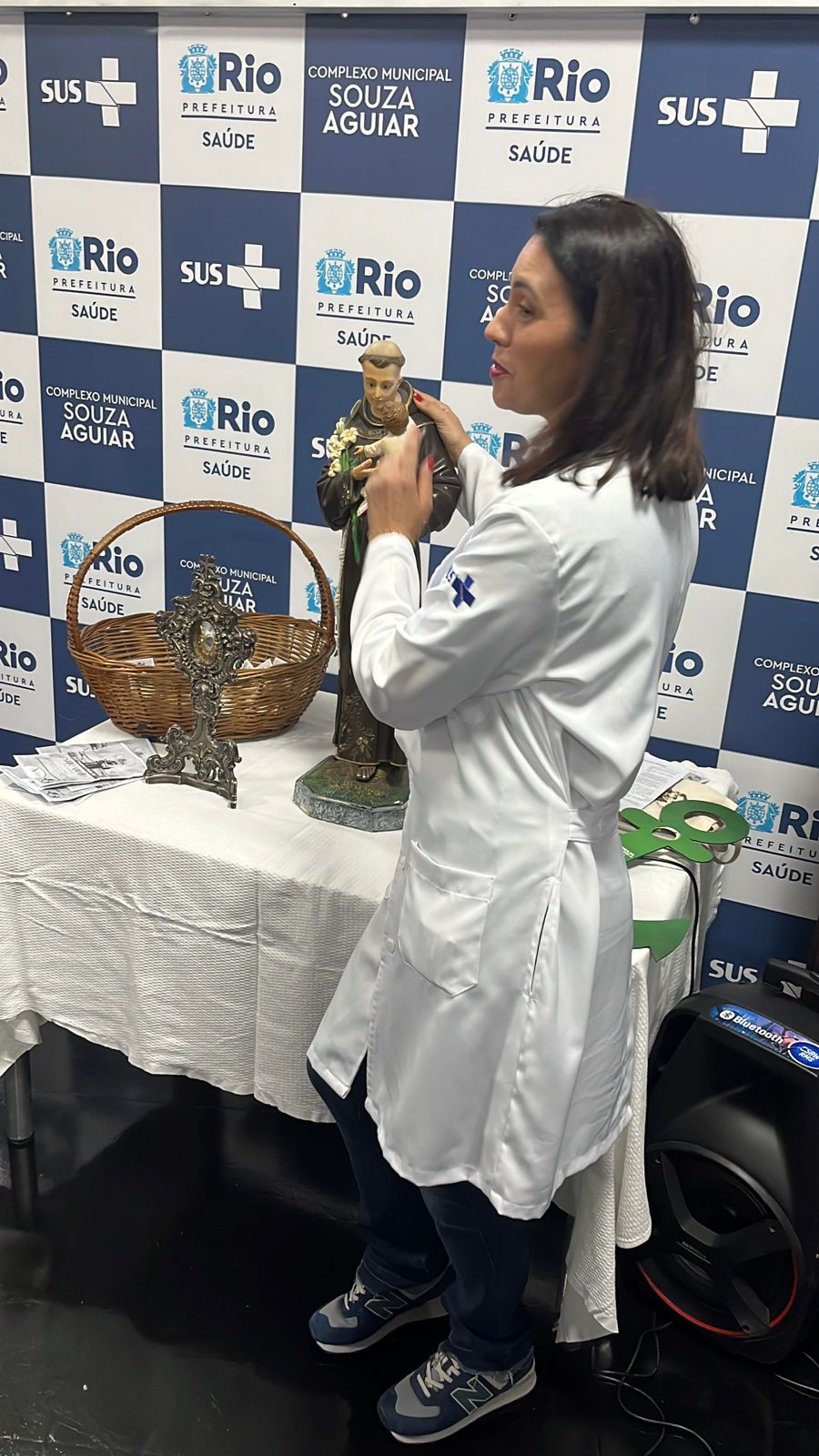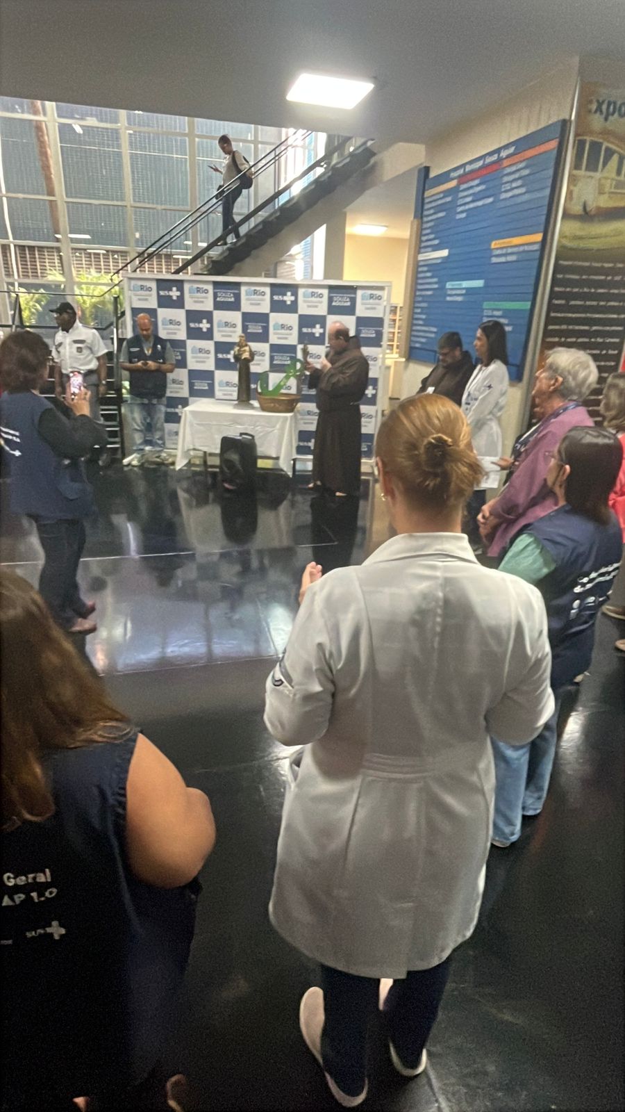 Na parte da tarde, foi a vez do Hospital Municipal Souza Aguiar receber a visita do Santo, desta vez com a presença de Frei Gustavo e Frei Cláudio Broca. O Souza Aguiar é um Hospital Público de Urgência e Emergência, sendo considerado um dos maiores do gênero na América Latina. Como nos anos anteriores, a imagem foi recebida pela diretora, Paula Travassos e pela equipe da Capelania Hospitalar para um momento de benção e oração no saguão da Unidade. Em breve reflexão, Frei Gustavo destacou que todo o empenho dos profissionais daquele hospital para curar, aliviar a dor e cultivar a esperança é verdadeiro hino de louvor a Deus.