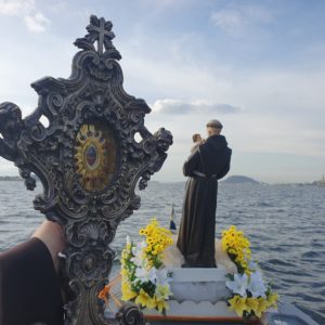 Na parte da tarde, às 13h40, a imagem deixou o Convento em carro aberto, escoltada pelos Fuzileiros Navais, em direção à Sede da Capitania dos Portos do Rio de Janeiro. Ali, pela segunda vez consecutiva, realizou-se, após o momento de oração, a Procissão Marítima com Santo Antônio na Baía da Guanabara. A beleza do conjunto céu, mar, verde e cidade, emoldurando monumentos como o Cristo Redentor e o Pão de Açúcar foi estímulo para um percurso marcado pela contemplação e pelo louvor. O Cântico das Criaturas, tema da Trezena deste ano, foi rezado com olhos e com o coração de quem se dispôs a navegar com Santo Antônio. O Santo foi conduzido numa lancha, acompanhado pelos fiéis devotos que navegaram numa escuna. Foi um momento de comunhão fraterna entre a Capitania dos Portos e o Convento Santo Antônio.