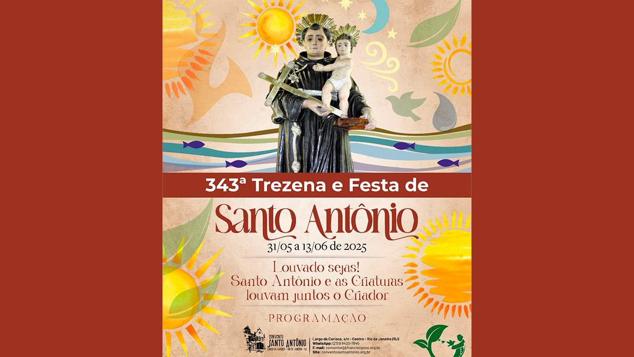Vivendo um tempo de muitas novidades e projetos, o Convento Santo Antônio do Largo da Carioca está nos últimos preparativos para celebrar a 343ª Trezena e Festa de Santo Antônio, em honra ao Santo mais popular do Brasil, que começa no próximo sábado, dia 31 de maio, às 10h. Declarada como Patrimônio Cultural Imaterial da Cidade do Rio de Janeiro pela Lei Municipal 8.533, promulgada pela Câmara dos Vereadores em 8 de agosto de 2024, a Trezena deste ano apresenta a temática da Ecologia Integral, fazendo alusão aos 800 anos do Cântico das Criaturas, escrito por São Francisco de Assis, com quem Santo Antônio conviveu e de quem foi discípulo como frade franciscano. A volta do funcionamento do elevador após a obra de modernização, facilitando acesso ao Convento, também é a boa notícia deste ano.