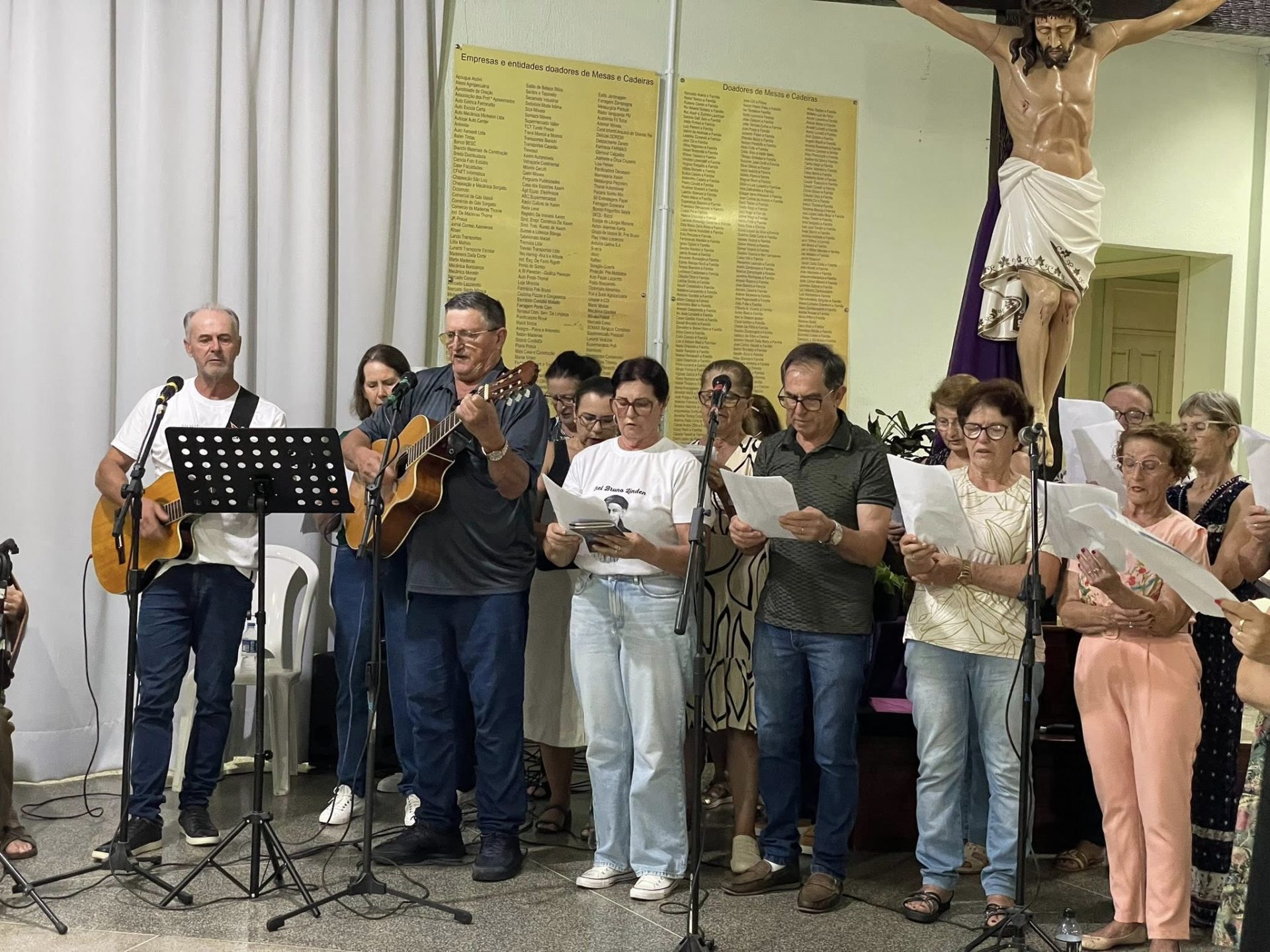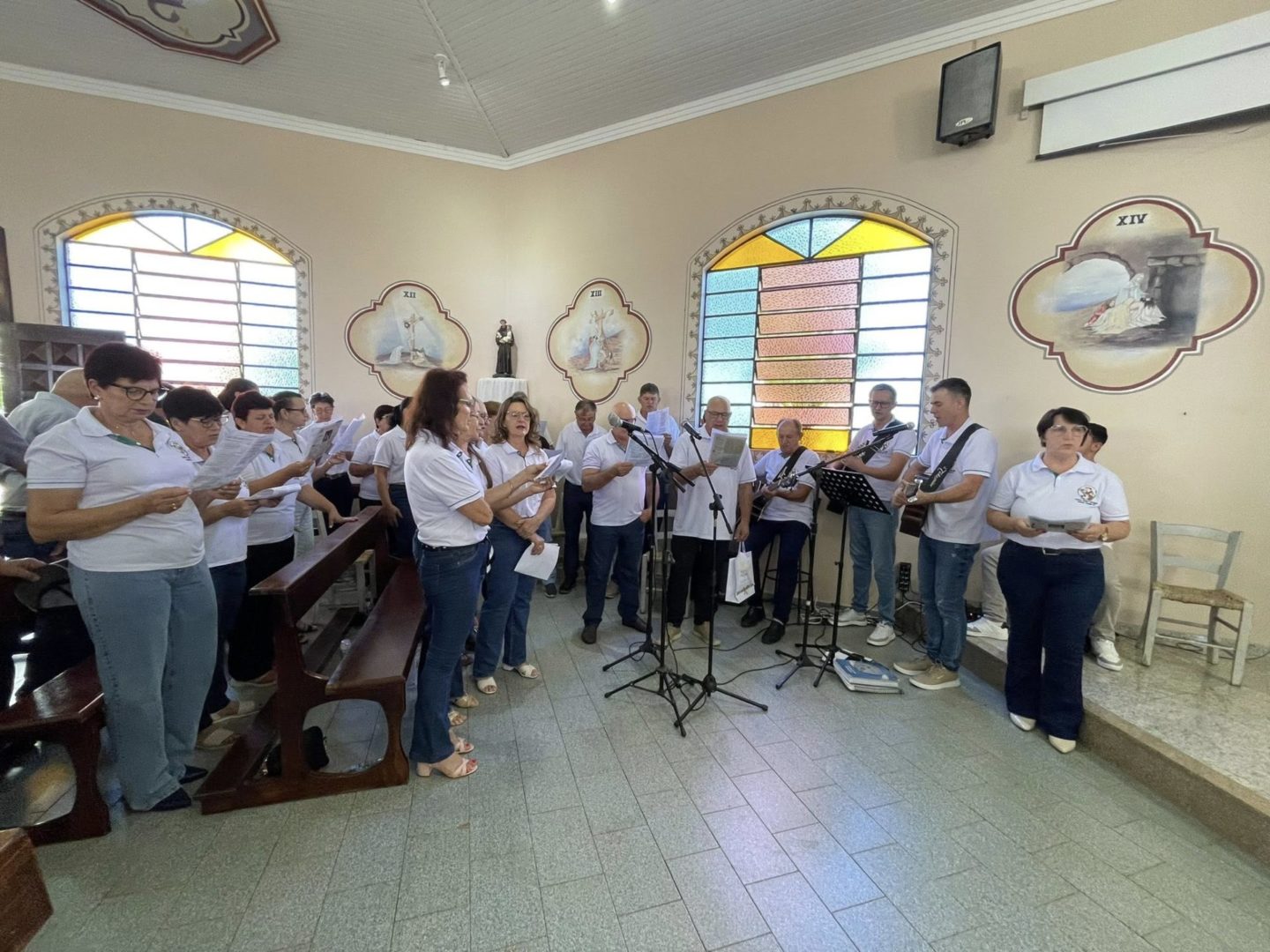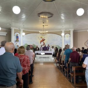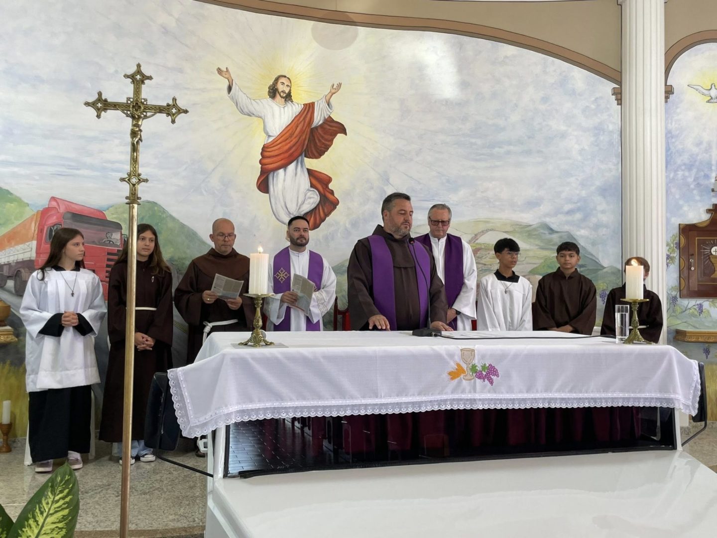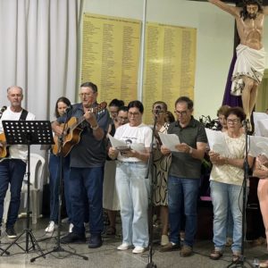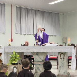 Na quinta-feira, 05 de março, foi celebrado o segundo dia do tríduo de Frei Bruno com o tema “Frei Bruno e a proteção contra temporais”. A Santa Missa foi presidida por Frei Gilson Kammer. A liturgia e os cantos foram realizados pela Comunidade São Cristóvão do bairro Ari Lunardi.