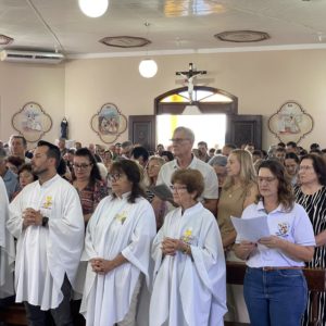 Ao final da celebração, foram feitos agradecimentos às comunidades presentes e a todos que participaram dos dias festivos. Um reconhecimento especial foi dirigido à Comunidade do bairro Ari Lunardi, que acolheu a festa paroquial em razão do restauro interno da Igreja Matriz, e à Comunidade de Lajeado Grande, responsável por animar a grandiosa festa.