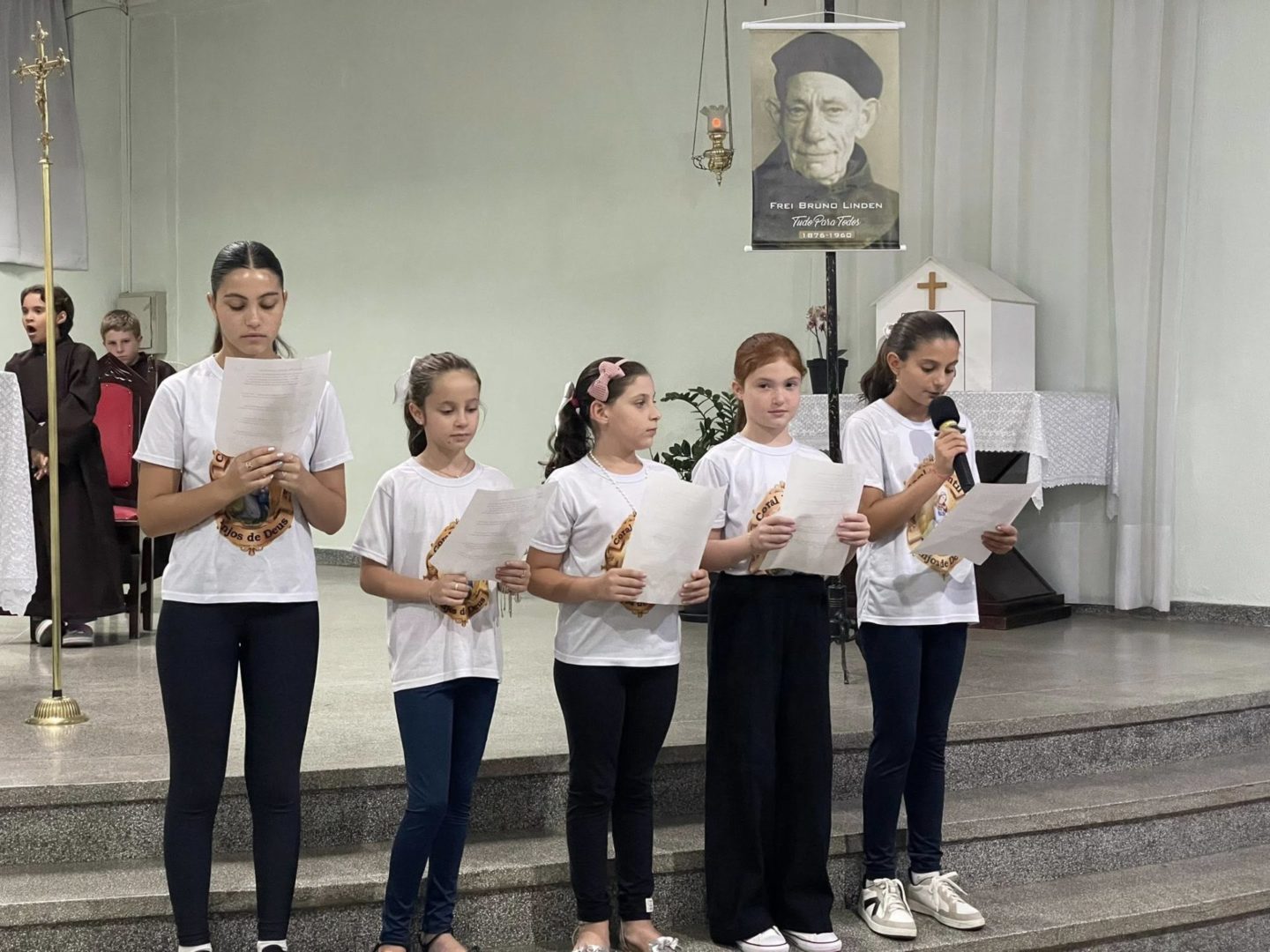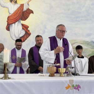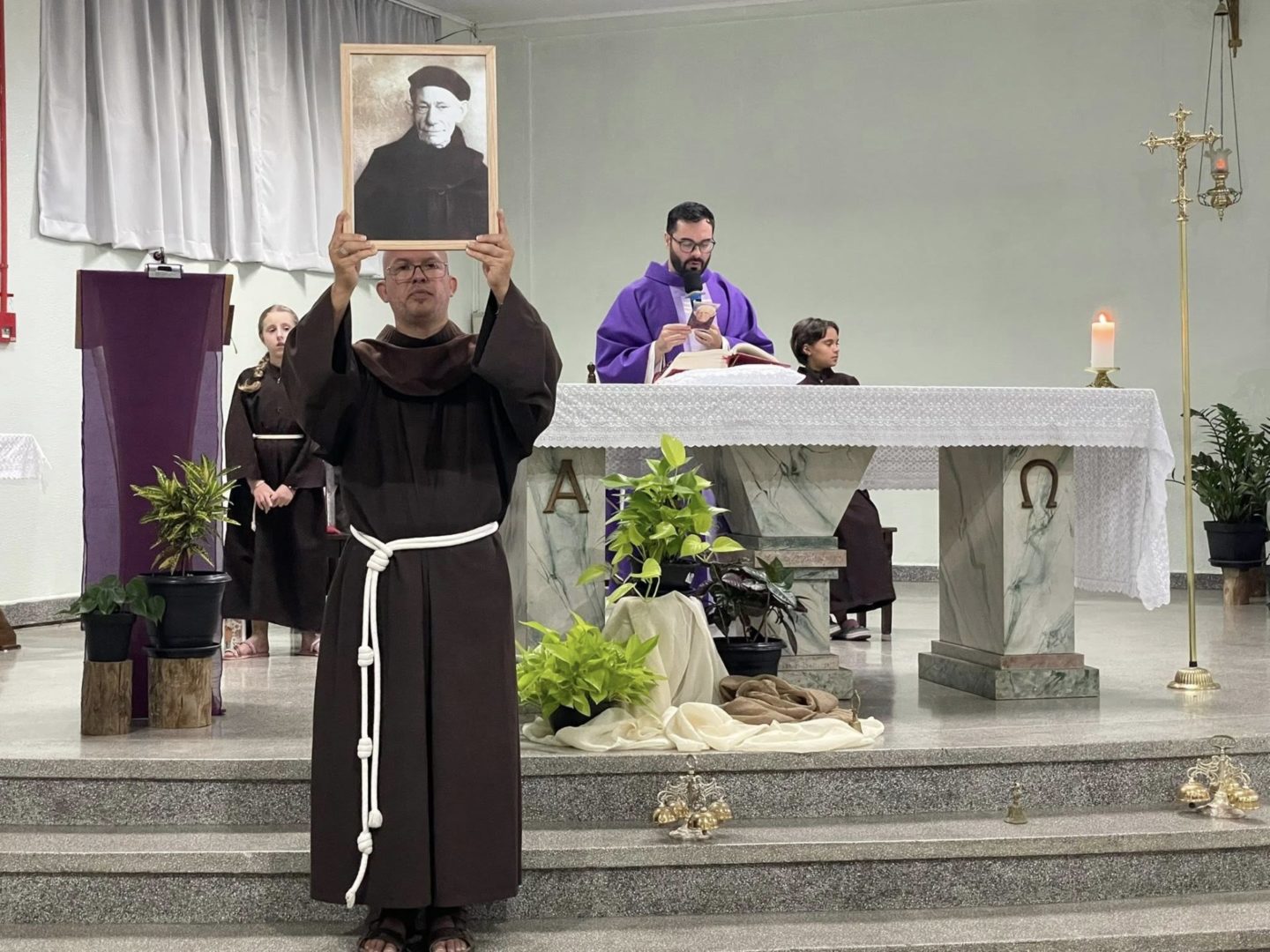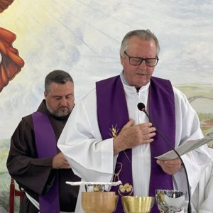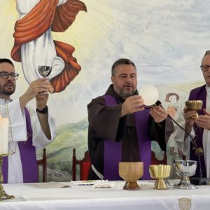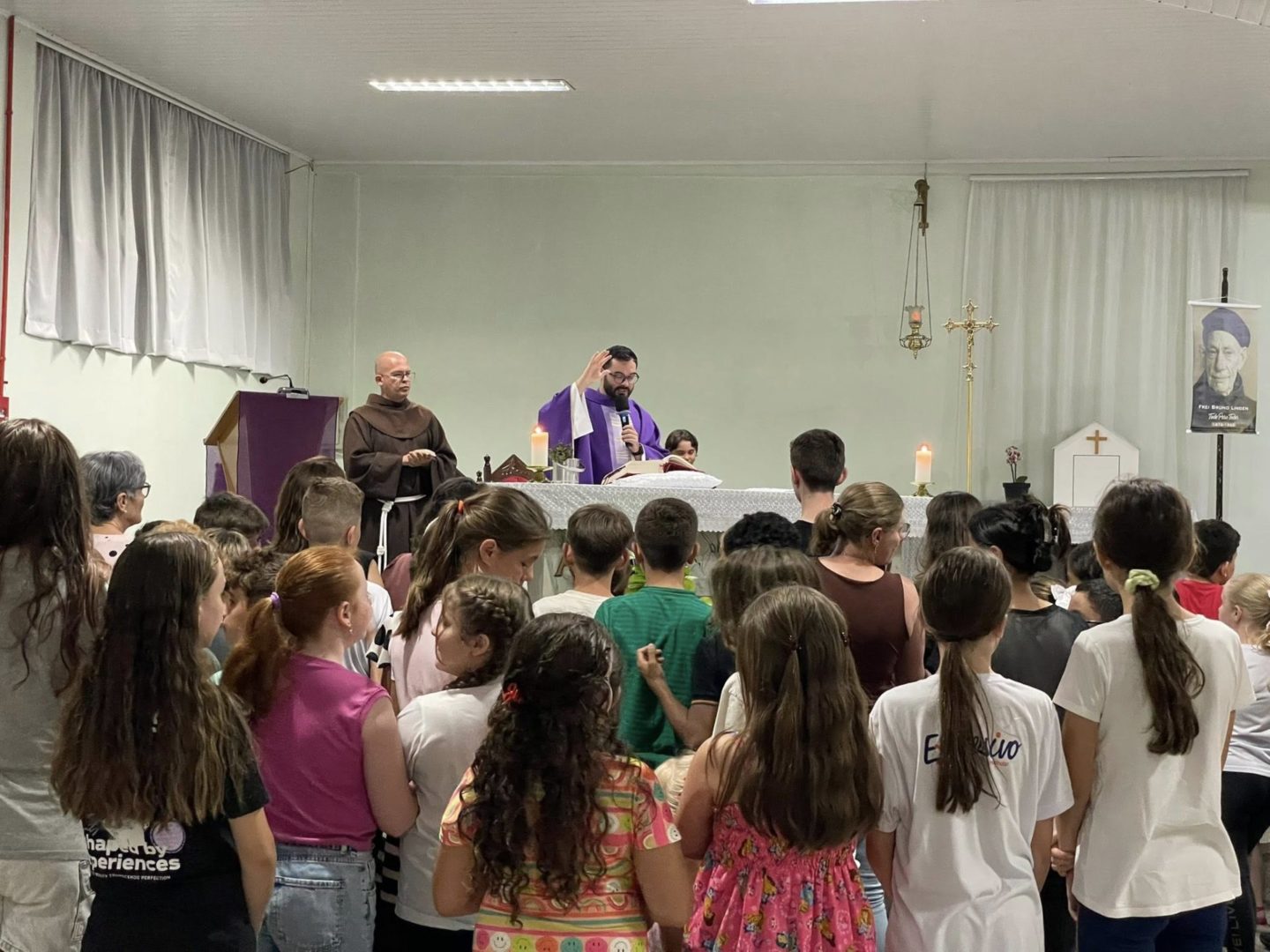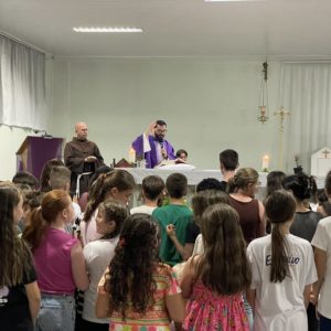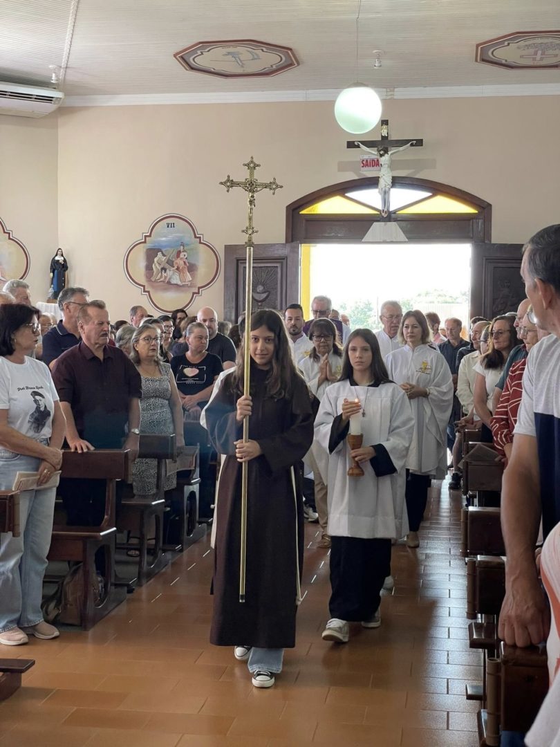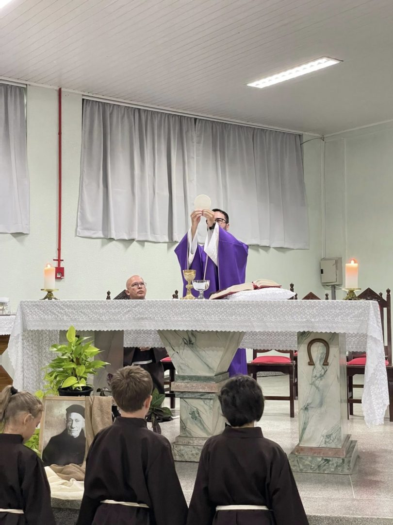 Frei Danilo Santos Oliveira presidiu a Celebração Eucarística do primeiro dia de tríduo. Em sua homilia, destacou a trajetória de Frei Bruno em Santa Catarina: as estradas por onde ele caminhava pelo Oeste para ir ao encontro do povo, as confissões e o caminho trilhado também motivaram as crianças na oração.
