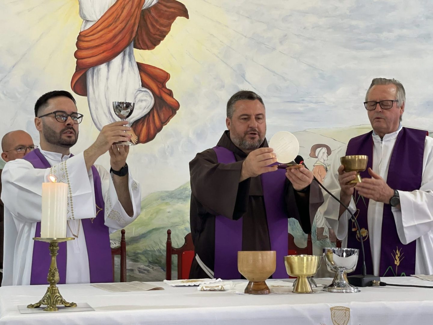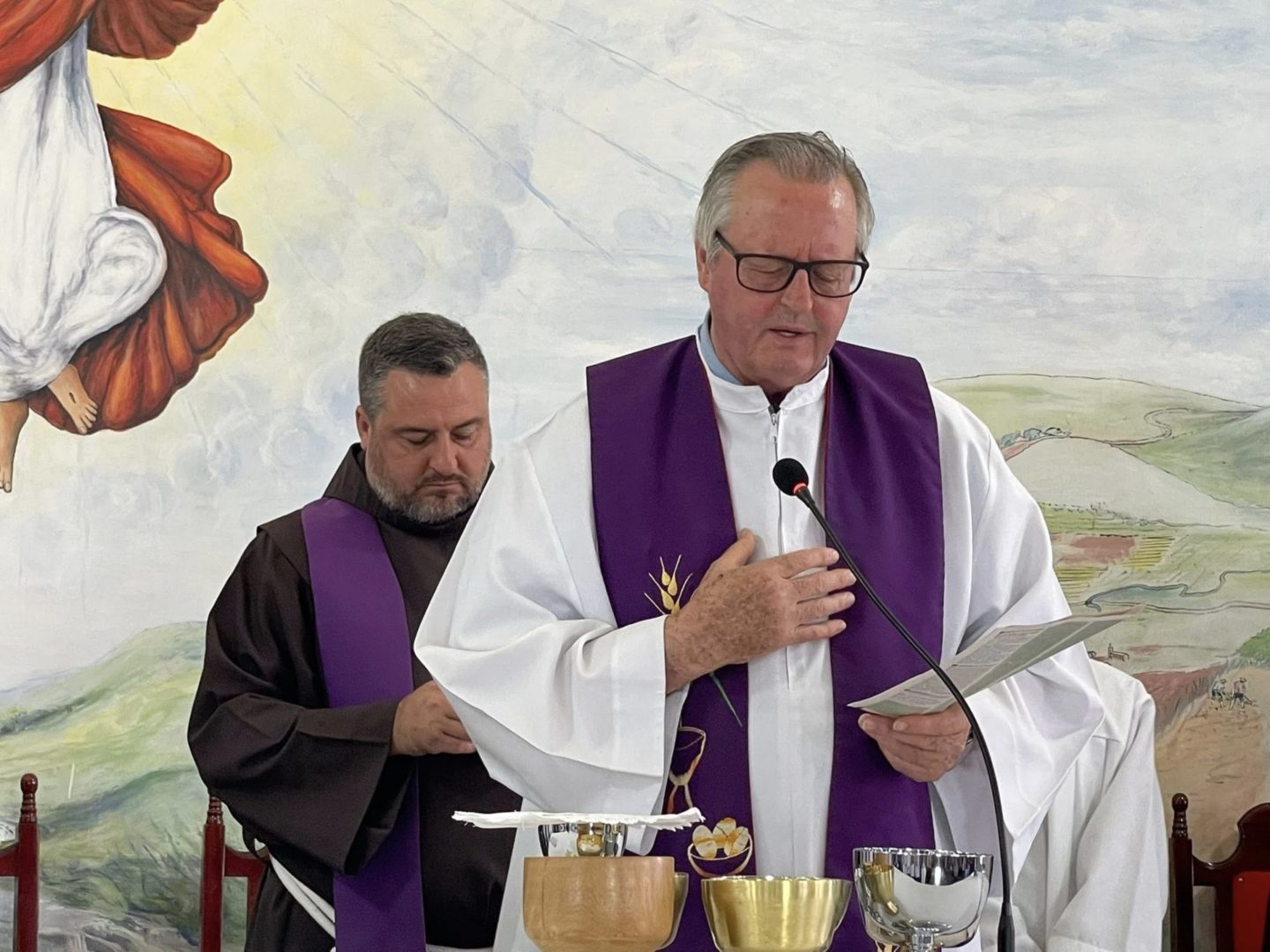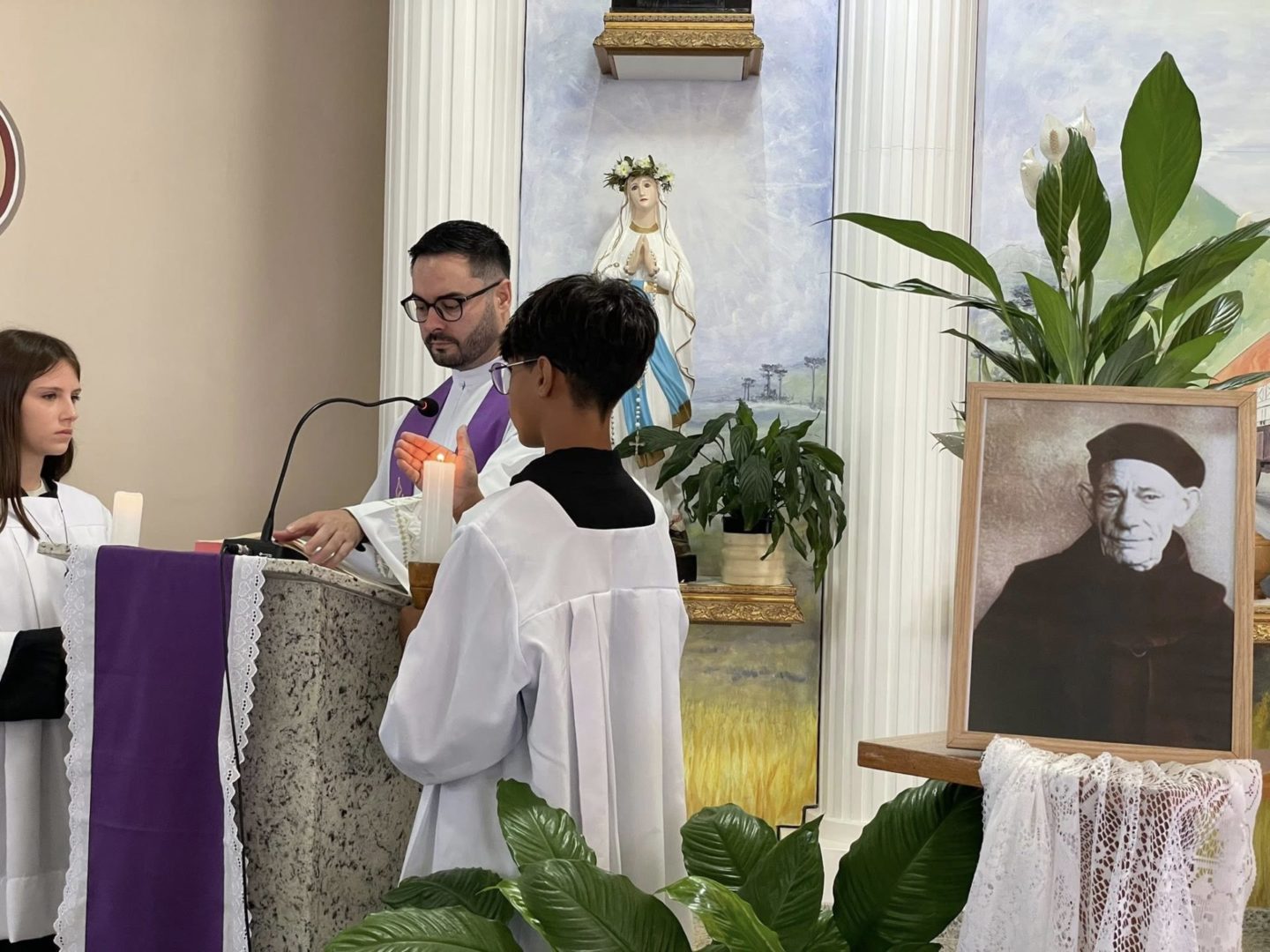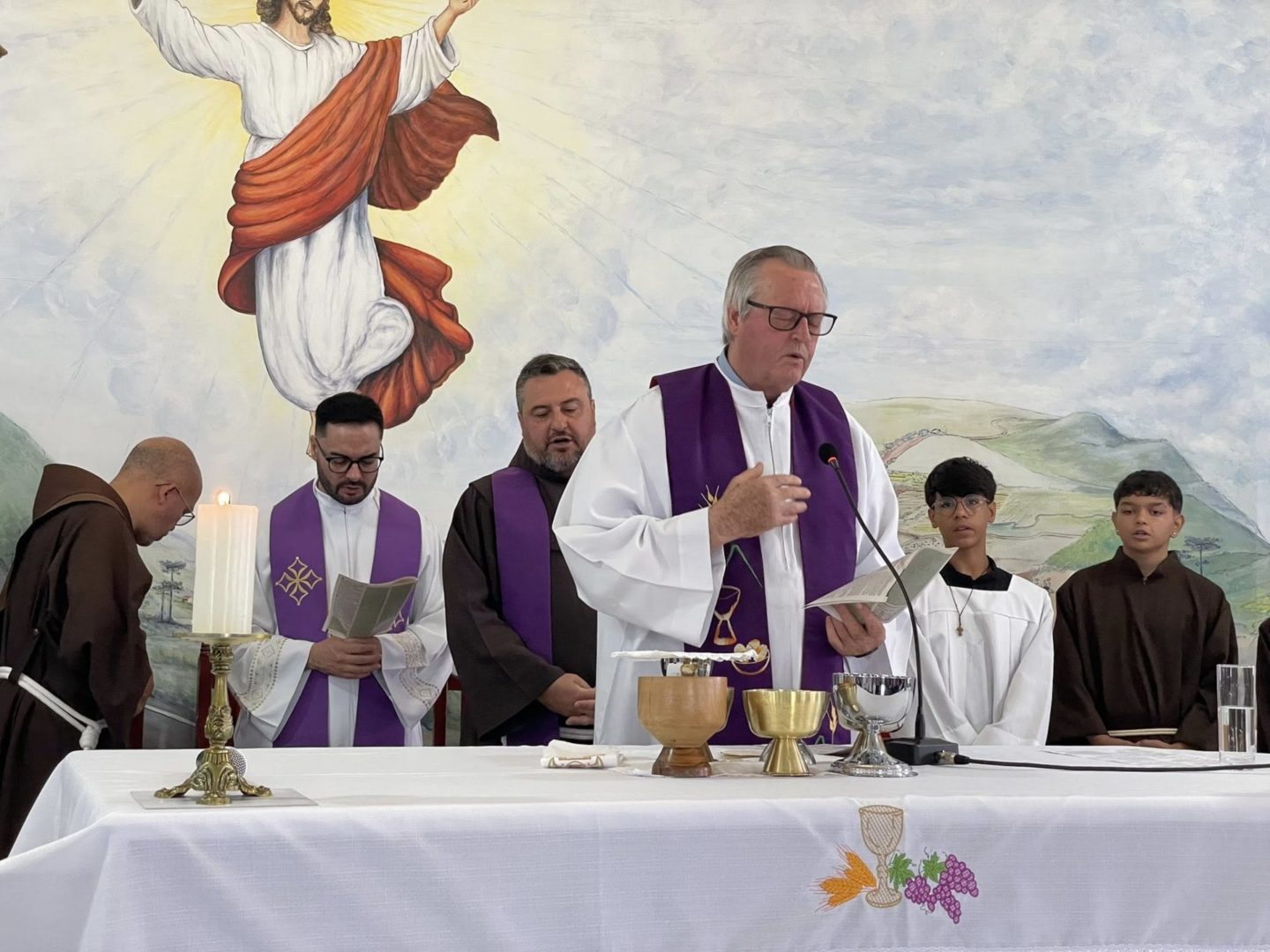 Frei Danilo Santos Oliveira presidiu a Celebração Eucarística do primeiro dia de tríduo. Em sua homilia, destacou a trajetória de Frei Bruno em Santa Catarina: as estradas por onde ele caminhava pelo Oeste para ir ao encontro do povo, as confissões e o caminho trilhado também motivaram as crianças na oração.