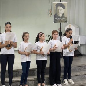 As preparações para a 14ª Festa de Frei Bruno tiveram início na quarta-feira, 04 de março, às 19h, na Matriz, com a abertura da catequese paroquial. Todos os catequizandos e catequistas da paróquia foram convidados para celebrar com o tema “Frei Bruno e as crianças”.