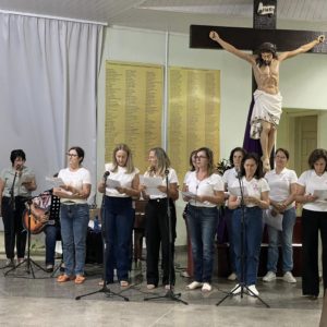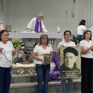 O terceiro dia do tríduo, celebrado na sexta-feira, 06 de março, com o tema “Frei Bruno e a oração”, foi presidido por Frei Jacir Zolet, contando com o grupo de professoras aposentadas na liturgia e nos cantos.