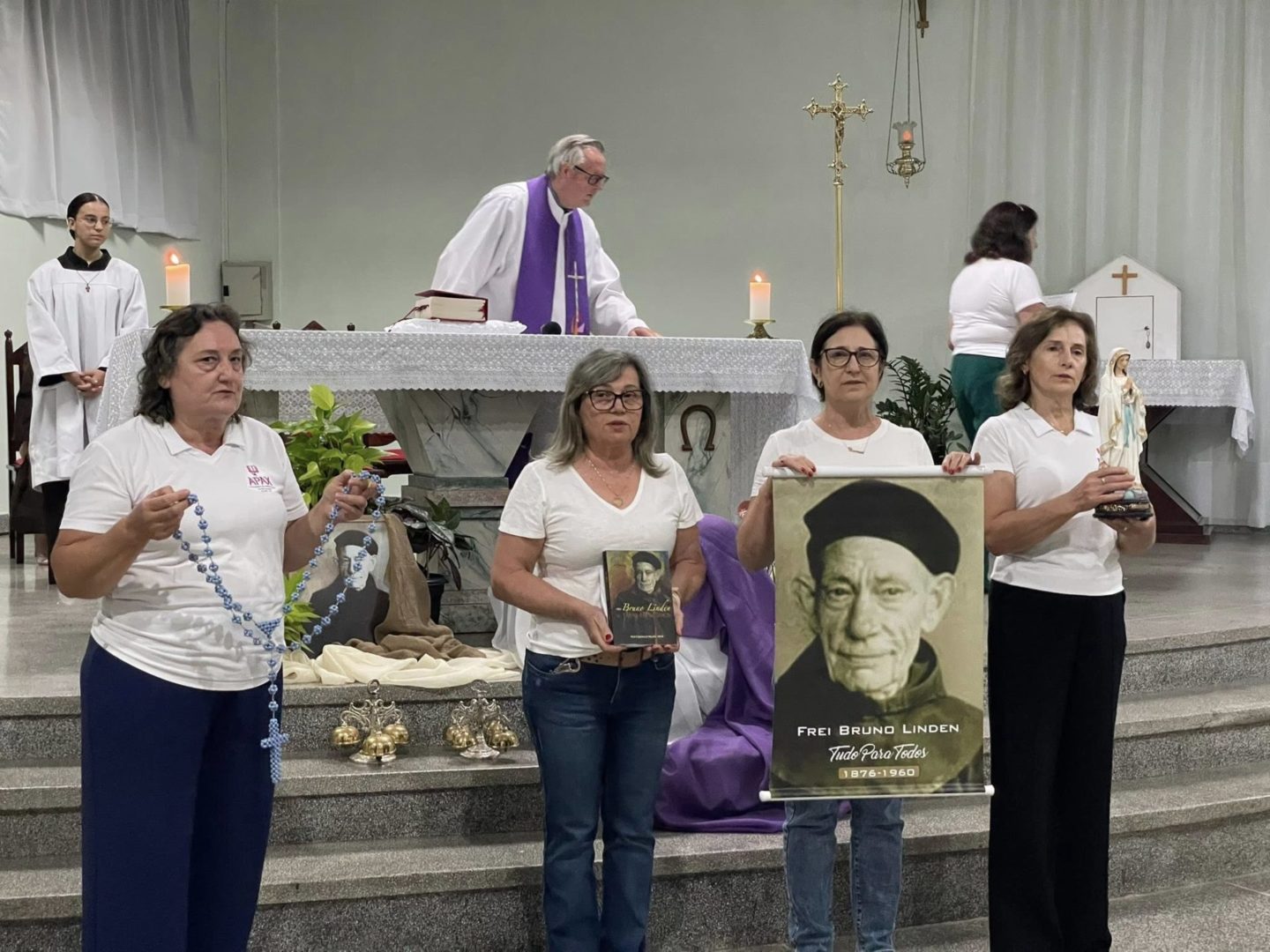 A Paróquia São Luiz Gonzaga celebrou no último domingo, 08 de março, às 10h, a Santa Missa festiva em honra a Frei Bruno Linden, na Comunidade São Cristóvão do bairro Ari Lunardi.