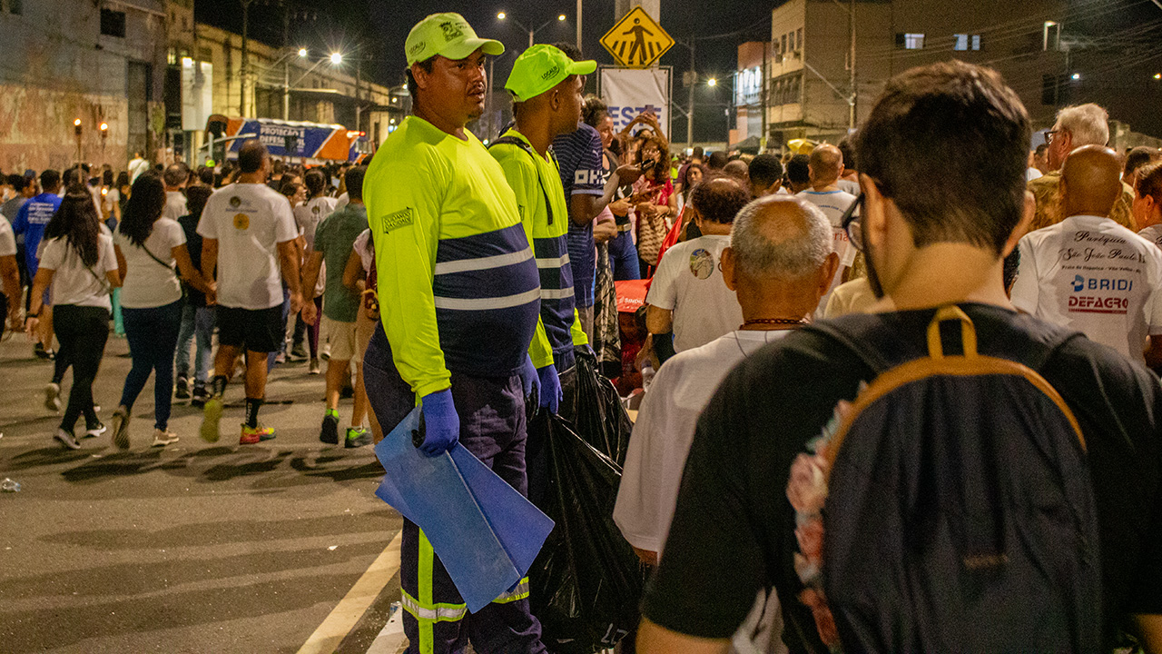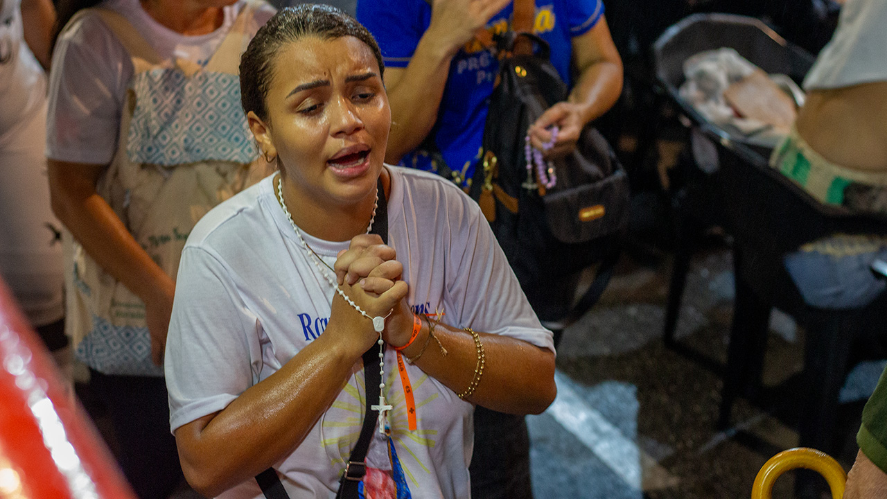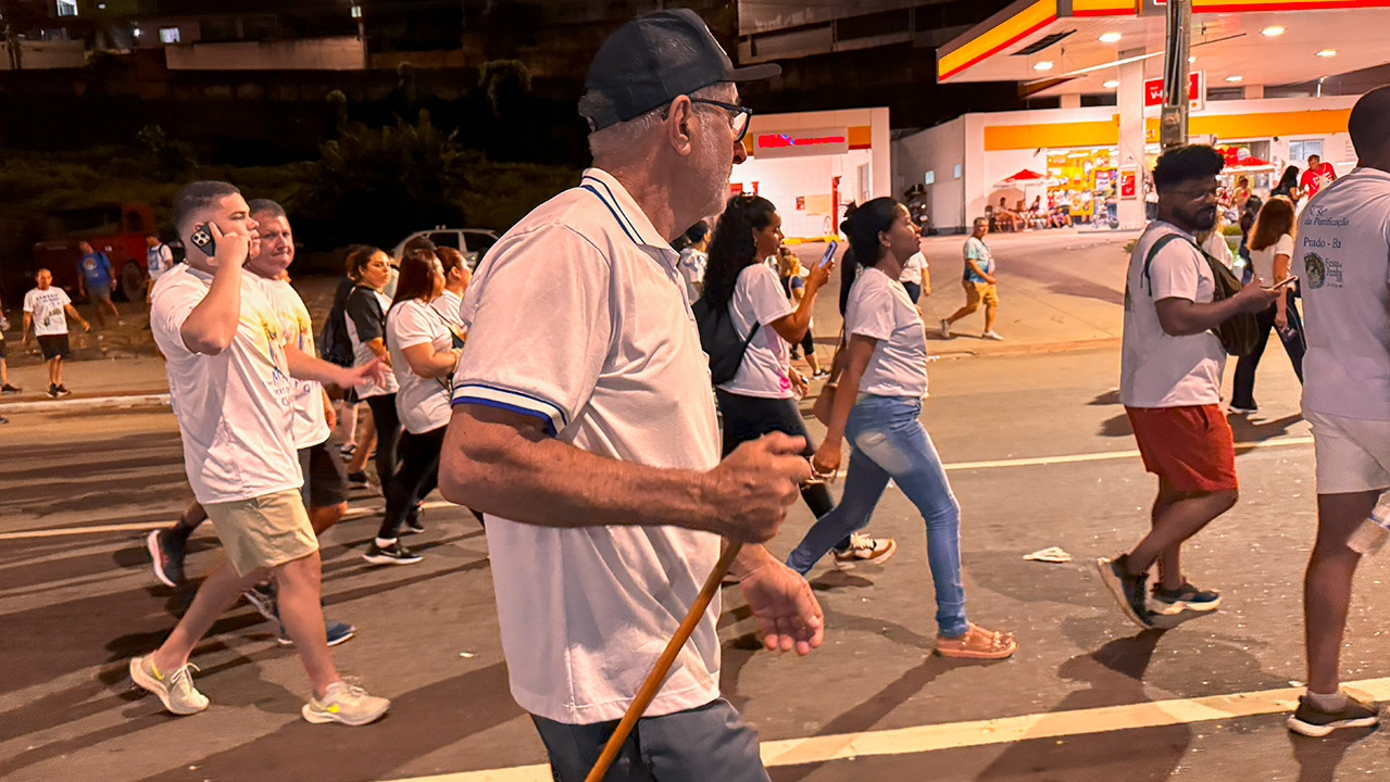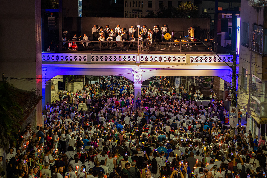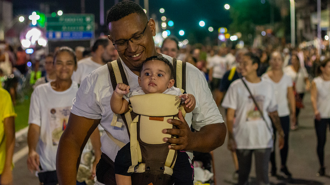 Sozinhos com certeza faríamos o percurso bem mais rápido. A multidão não anda tão depressa. Às vezes o caminho é interrompido por alguém que desviou de um buraco ou de um ressalto no piso, por um senhor idoso com dificuldade de locomoção, com a mãe que empurra a cadeira de rodas de seu filho especial. A Imagem Peregrina também passa por percalços, como os balanços do Penhamóvel e os fios nos postes mais baixos, levantados com uma haste que é levada pelos voluntários da Corrente da Penha e utilizados em momentos de necessidade. Cada interrupção ou desvio pode ser um bom exercício de paciência, de perceber que nem sempre a vida e coisas caminham no ritmo mais adequada para nós e que há momentos em que diminuir a marcha se faz necessário. Paciência na família, no trabalho, no trânsito, na vizinhança, com as crianças, com os idosos, é sempre uma virtude útil e necessária. Paciência também na Romaria dos Homens.