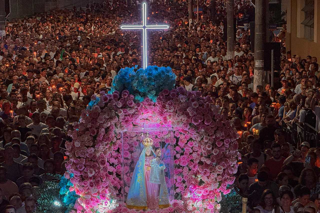 A multidão é imensa. Enquanto um grande grupo já atravessa a Segunda ponte, outros ainda estão próximos à Catedral. Na extensa Avenida Carlos Lindemberg, a multidão toma todas as pistas. No entanto, a Romaria não é corrida nem competição. Desta forma, todos, quem está no começo, no meio ou no fim, quem começou a caminhar a partir da Catedral ou se somou ao grupo num ponto mais adiante, não importa, são todos peregrinos e peregrinas, e Maria caminha em companhia de todos.