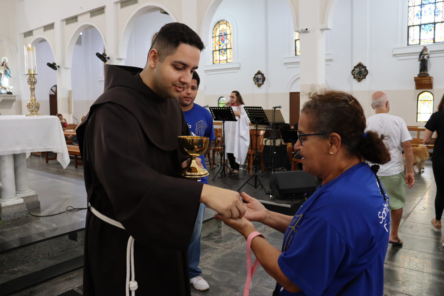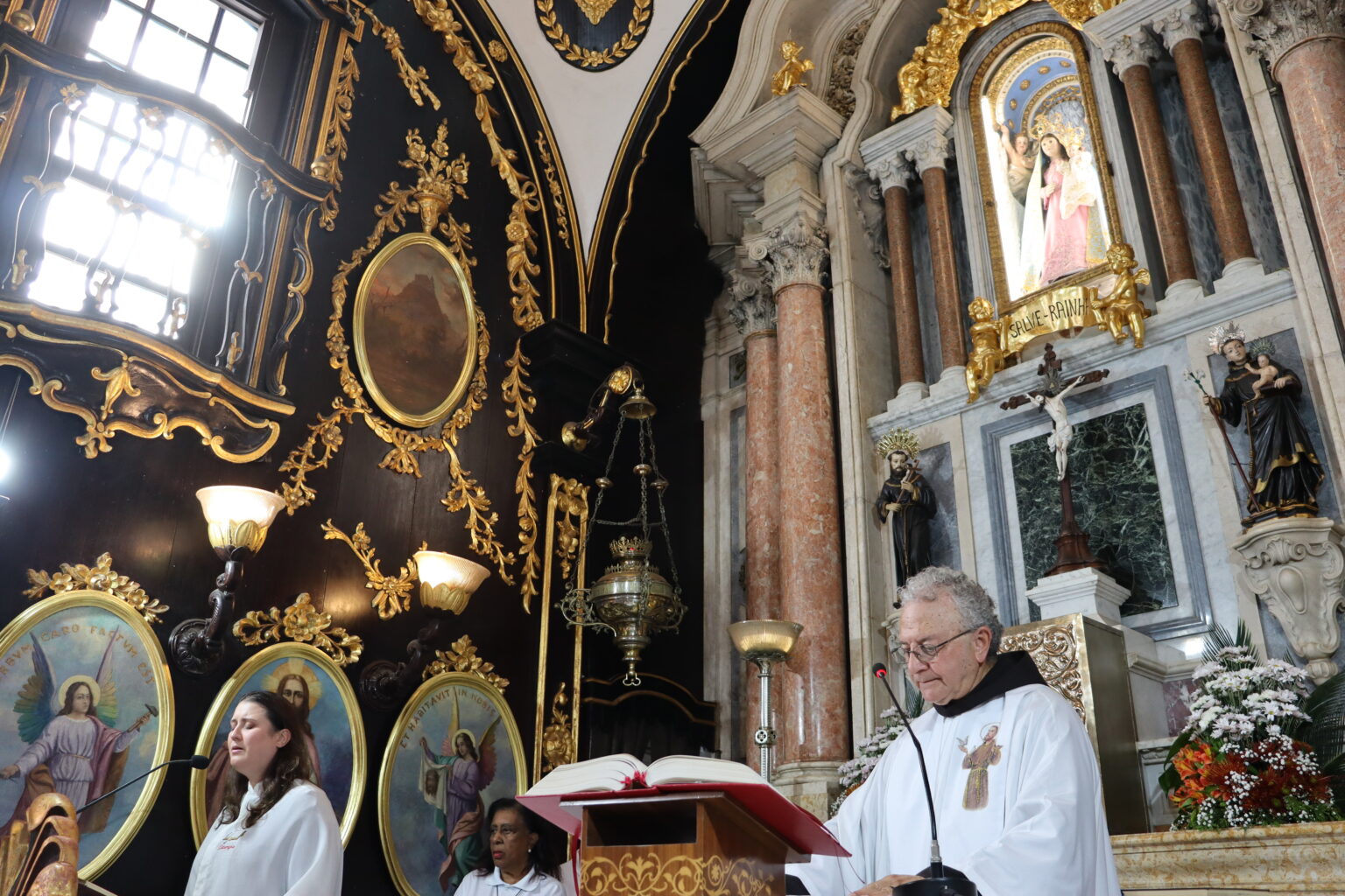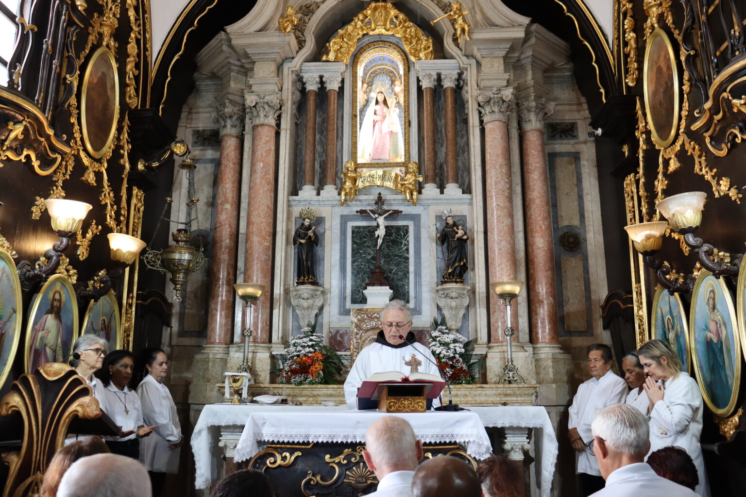 A Celebração foi presidida pelo Frei Paulo César Ferreira, Vigário do Convento. “O Santo de Assis, que inspirou e continua a inspirar os artistas, escultores, pintores, os músicos, escritores, também os vocacionados, tantos vocacionados, jovens, homens e mulheres, casados ou solteiros. São Francisco, de fato, inspira a todos nós que encontramos em Jesus esse poço de água viva e queremos beber dessa fonte como bebeu São Francisco. Então Francisco nos conduz a Jesus”, iniciou.