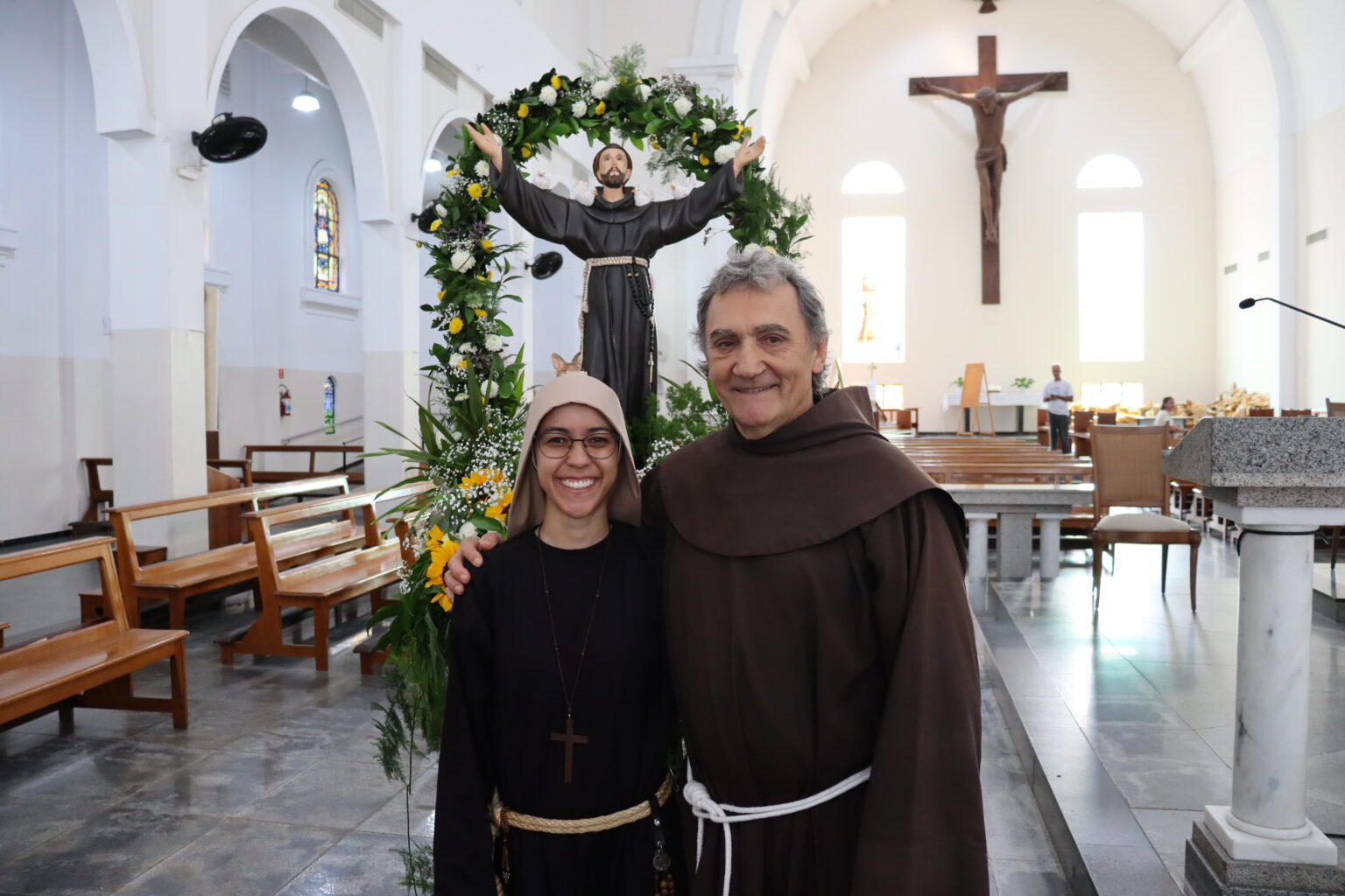 “Nós contemplamos em Francisco de Assis, o cristão pleno, o ser humano cristificado, melhor dizendo. Todo absorto no mistério de Cristo, o cristão, o homem redimido, reencontrado, resgatado na graça e na força de Cristo. O filho de Deus bendito, o Emmanuel, Deus conosco. Francisco encontra em Jesus, crucificado, louco de amor pela humanidade, por todos nós, o melhor jeito, então, de ser humano. Jesus, feito homem, nos permite, em comunhão com ele, tornarmos como Deus, o mais parecido, plenamente, plenamente parecidos com o nosso Deus, nosso Criador, nosso Pai. Nós nos espelhamos em Jesus, como fez São Francisco, para que o Senhor seja reconhecido em nós”, destacou o Vigário do Convento.