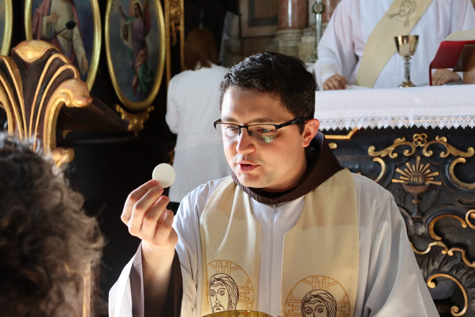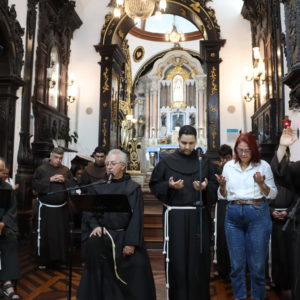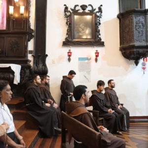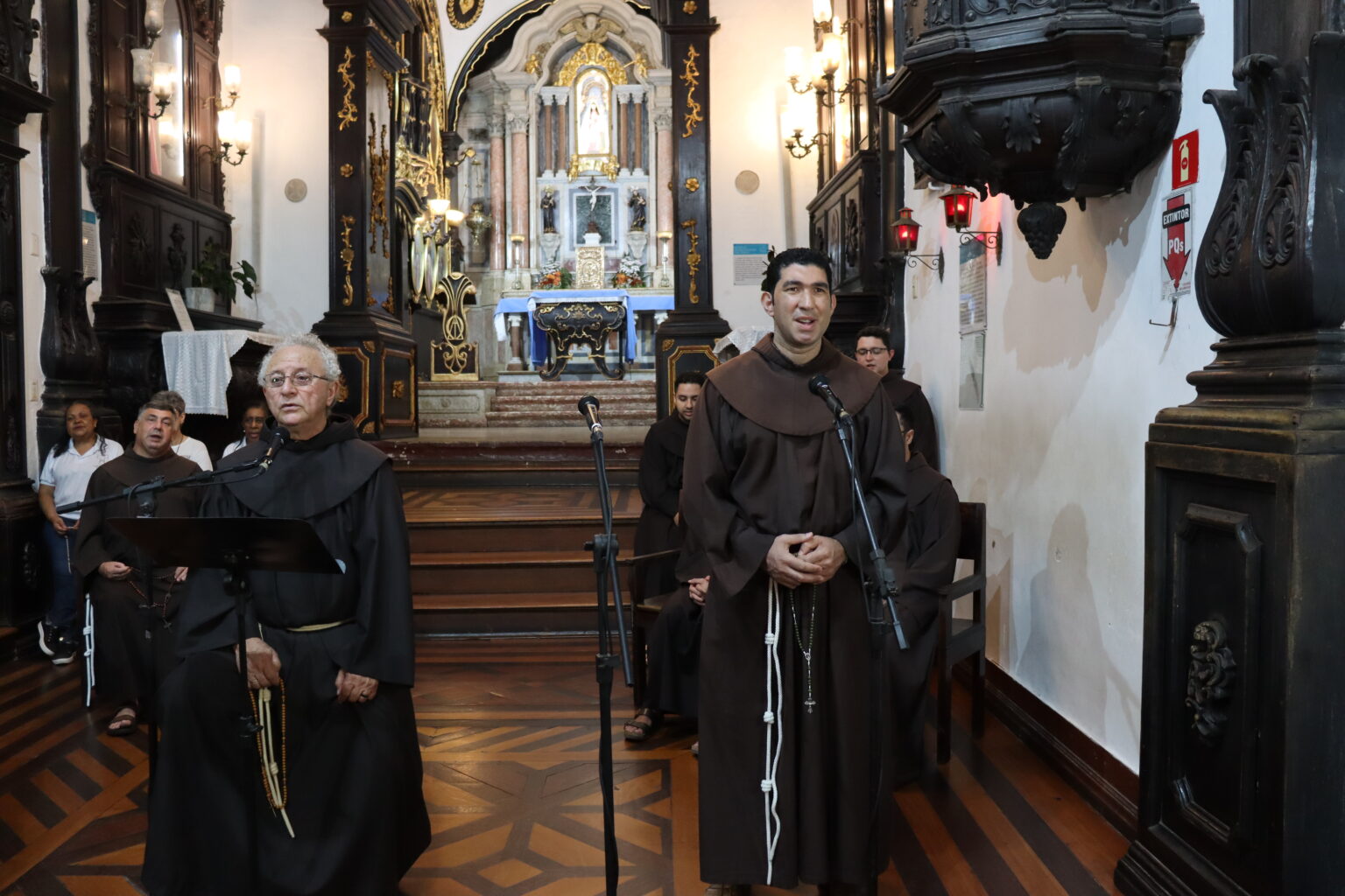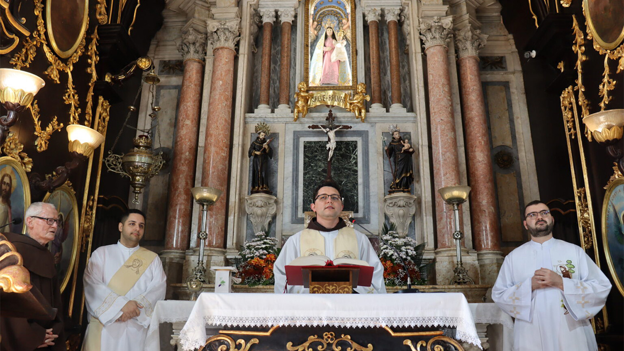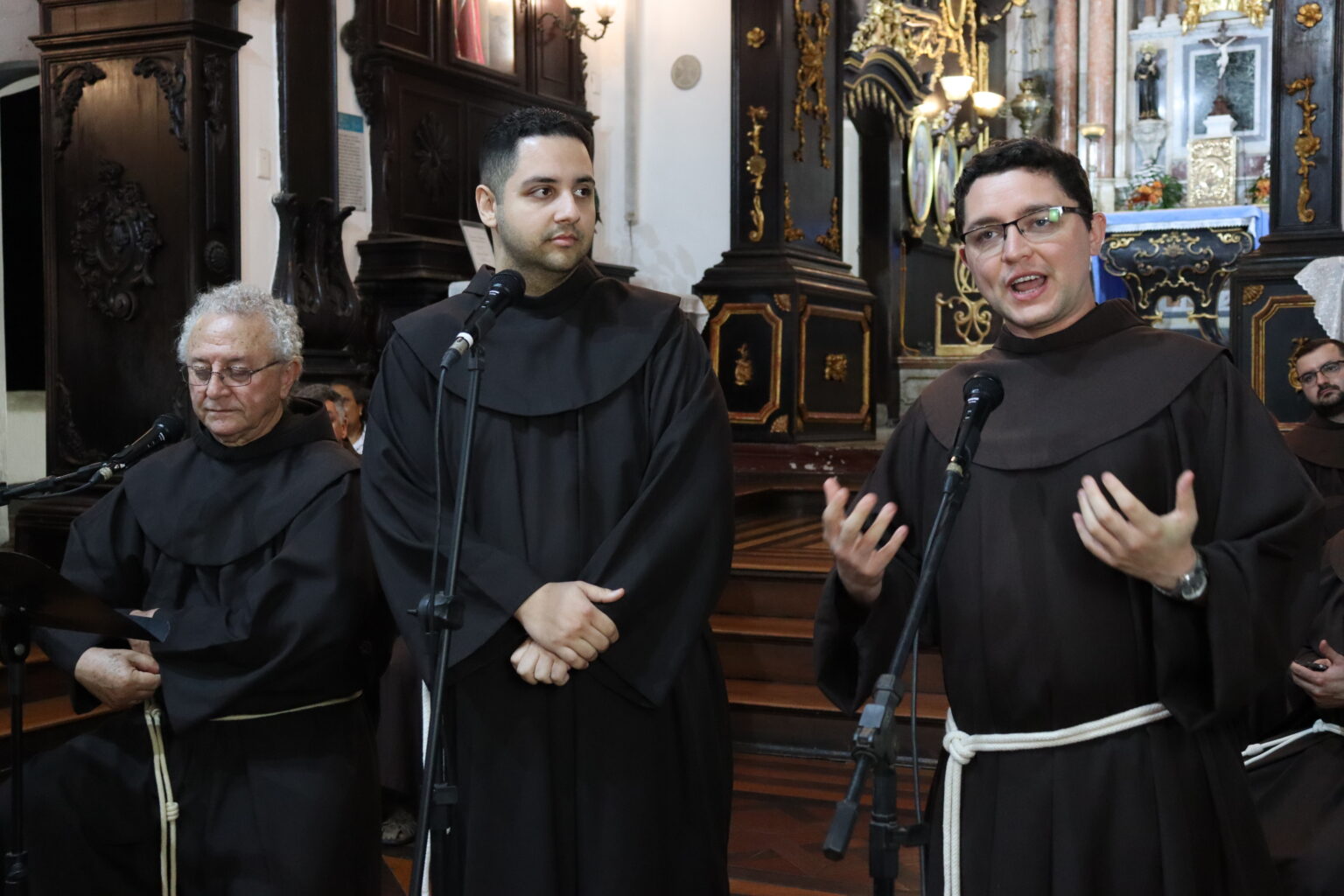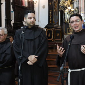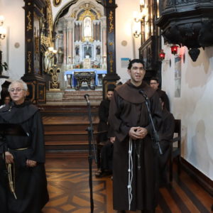 Ao final da celebração, Frei Felipe fez um convite aos devotos da Virgem da Penha para que participem da Ordenação Presbiteral no Santuário Divino Espírito Santo. Também teve parabéns para o Frei Gabriel e uma palavra do Frei Augusto, sobre as muitas missões da Província. “A nossa instituição, chamada de Província da Imaculada Conceição do Brasil, está presente em Santa Catarina, no Paraná, em São Paulo, no Rio de Janeiro e aqui no Espírito Santo. E é com alegria que nós, aqui estamos, comungamos e partilhamos desta vida, desta vocação franciscana que nos realiza e cada dia nos desafia a evangelizarmos por meio da nossa vida, por meio do carisma franciscano”, disse Frei Augusto.