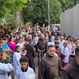 Em nome da Província Franciscana da Imaculada Conceição do Brasil, o Vigário provincial, Frei Gustavo Medella, destacou o quanto a consciência da importância do testemunho e do legado de Frei Bruno tem crescido entre os frades e fraternidades da Província. “Prova deste carinho, foi a mobilização para que os frades e formandos de diferentes etapas da Formação Inicial se fizessem aqui presentes, assim como os frades e paroquianos de nossas presenças evangelizadoras na região”, ressaltou. “Com o objetivo de bem nos prepararmos para este encontro de fé de devoção, nossa Província promoveu uma novena unindo, em torno da figura de Frei Bruno, a Comemoração dos 800 anos do Cântico das Criaturas, composto por São Francisco, e o Jubileu da Esperança, com o lema ‘Louvado sejas, meu Senhor, por aquele que caminha na esperança’. Frei Bruno caminhou na esperança, e nós também queremos caminhar. Desta maneira desejamos seguir, unidos, inspirados pelo exemplo deste Homem de Deus”, declarou.