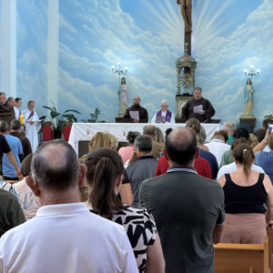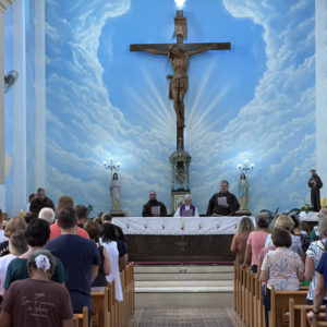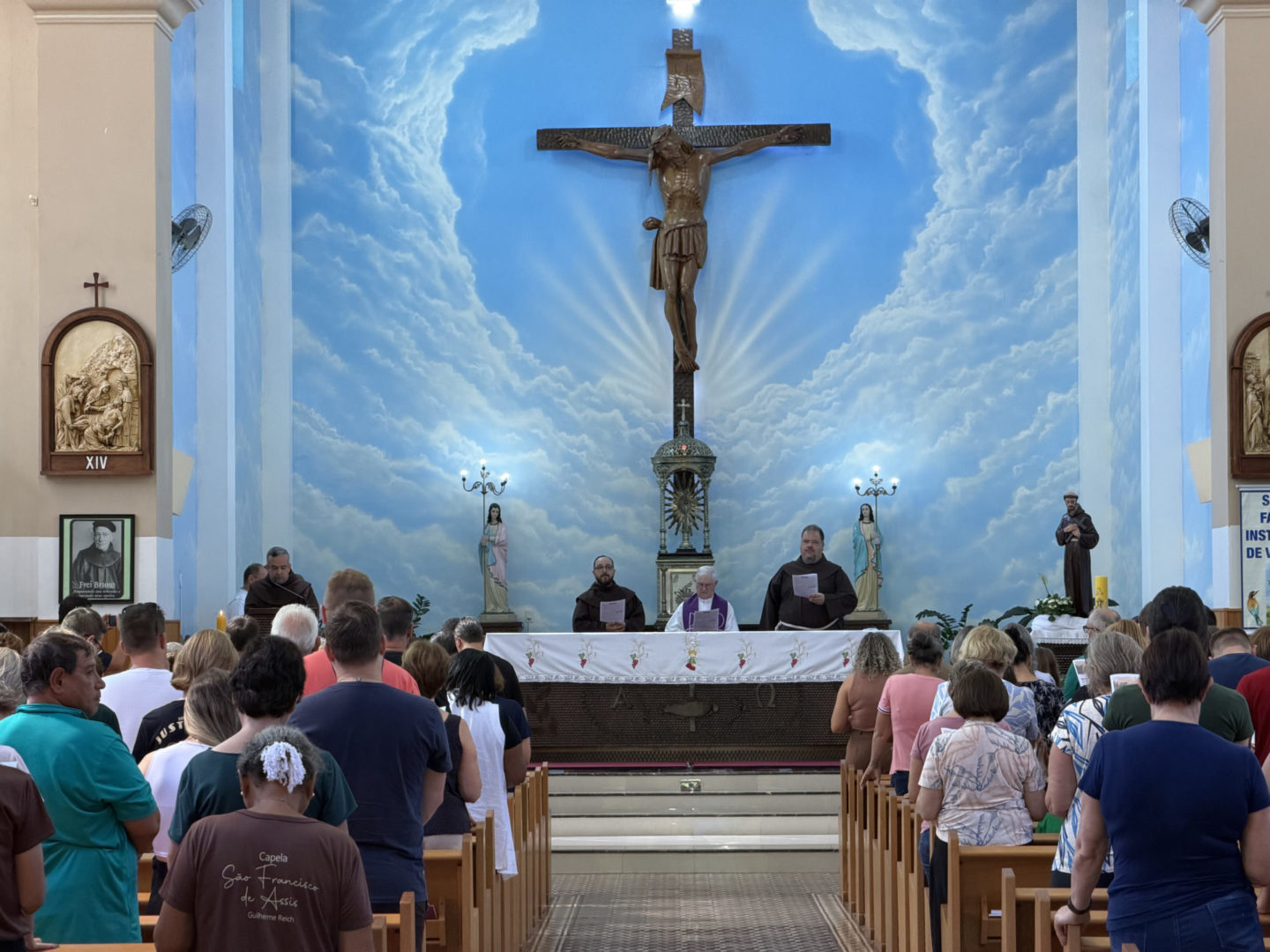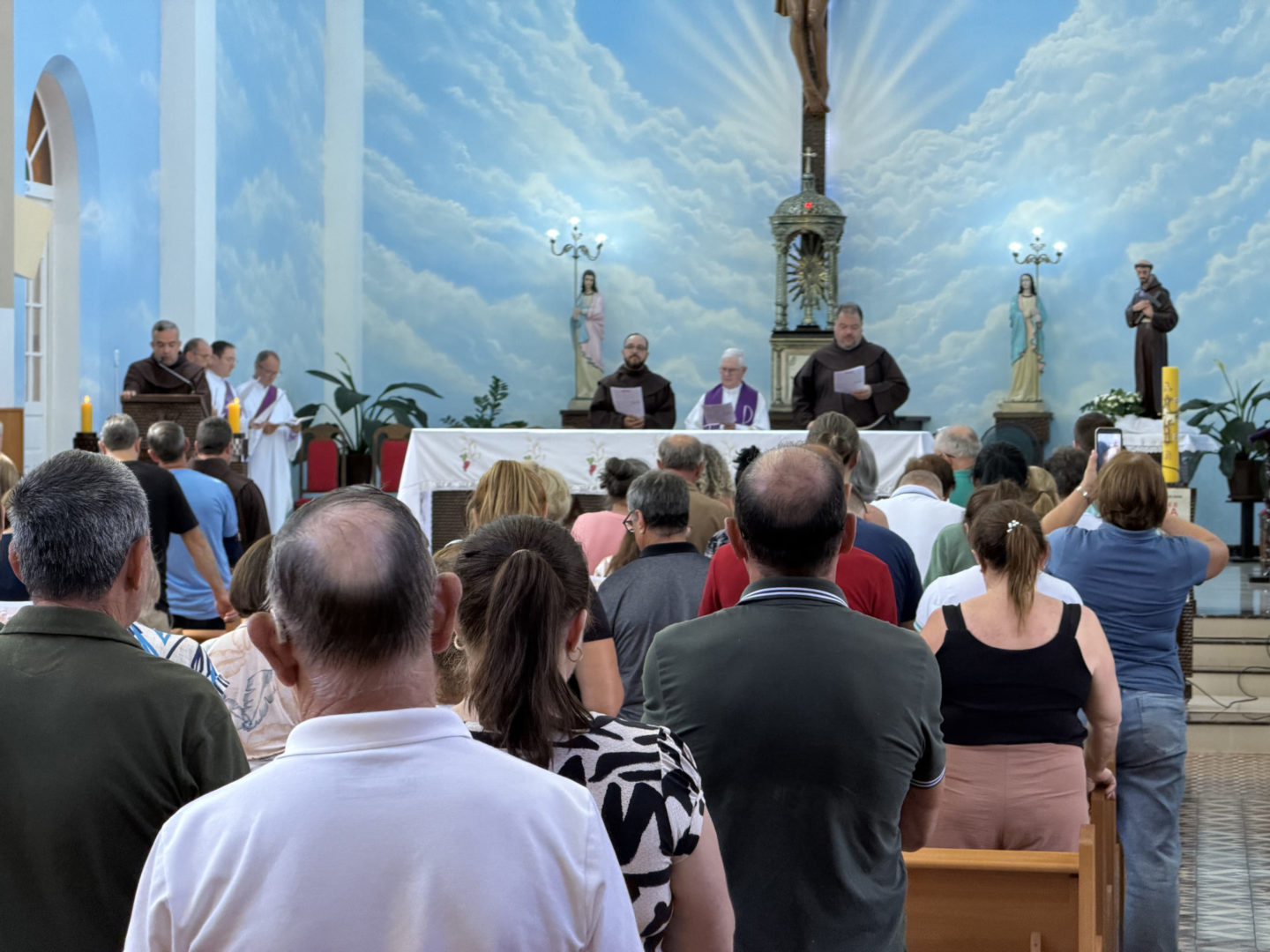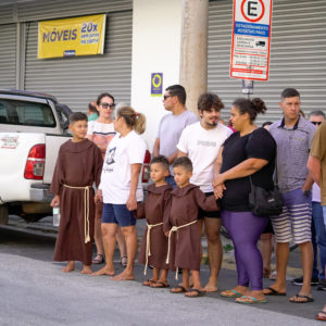 Por volta das 11h, um grupo de paroquianos das presenças da Província em Santa Catarina se dirigiu à Matriz de São João Batista, em Luzerna, localizada a pouco mais de quatro quilômetros do Cemitério Frei Edgar. Com os ônibus, vans e carros da caravana devidamente estacionados, todos se dirigiram à igreja, onde foram recepcionados pela comunidade local e por um grupo de crianças da paróquia vestidas com trajes franciscanos.