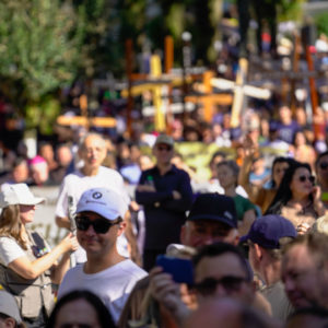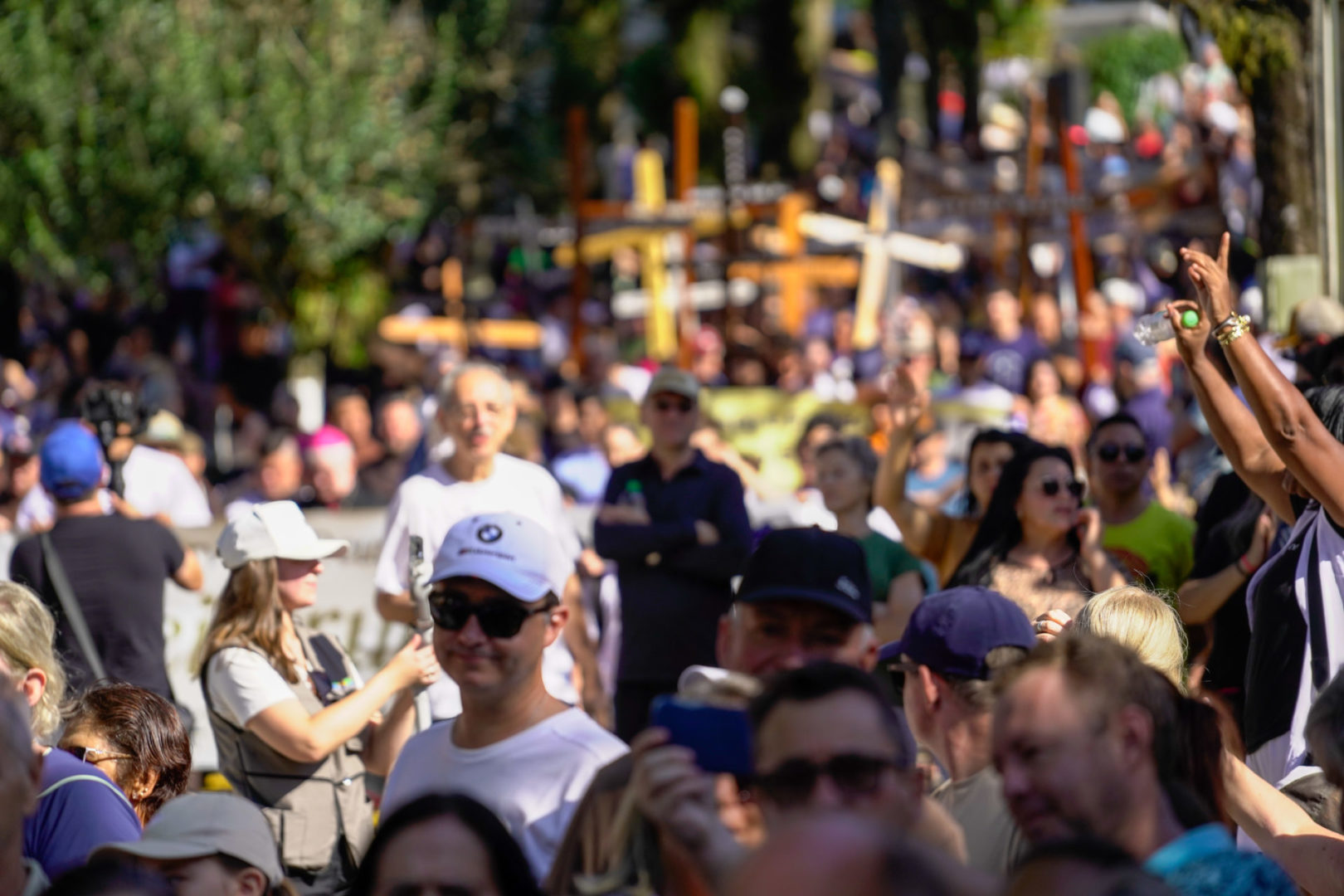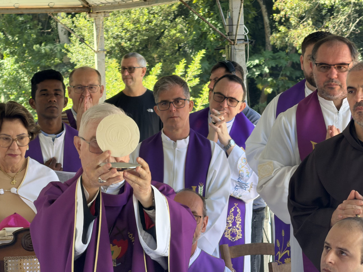 Na sequência, Frei Medella convidou os presentes a realizar um gesto que, segundo ele, seria a prova de que Frei Bruno permanece vivo: “Convido os veículos de comunicação a voltarem suas câmeras para esta multidão que toma o Cemitério Frei Edgar nesta manhã e faço a todos vocês uma pergunta: ‘Quem aqui considera Frei Bruno um amigo, um protetor e um intercessor muito próximo, por favor, erga a mão e permaneça com ela erguida’”, provocou o frade, constatando a adesão unânime da multidão ao gesto.