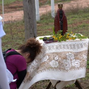 “Deus é maravilhoso, fico até emocionada. Era um desejo que Ele colocou no meu coração participar da caminhada, e depois fui encontrando — e convidando — pessoas que também queriam viver esse momento. No começo, não sabia como iria, pensei em uma van para que mais pessoas pudessem viver essa experiência. E hoje, com a graça de Deus e a intercessão da Virgem Maria, fomos com um ônibus — e até outro ônibus foi disponibilizado pela prefeitura. Obrigada à Monique pelo empenho, e fomos 48 pessoas, quando no início éramos apenas duas”.