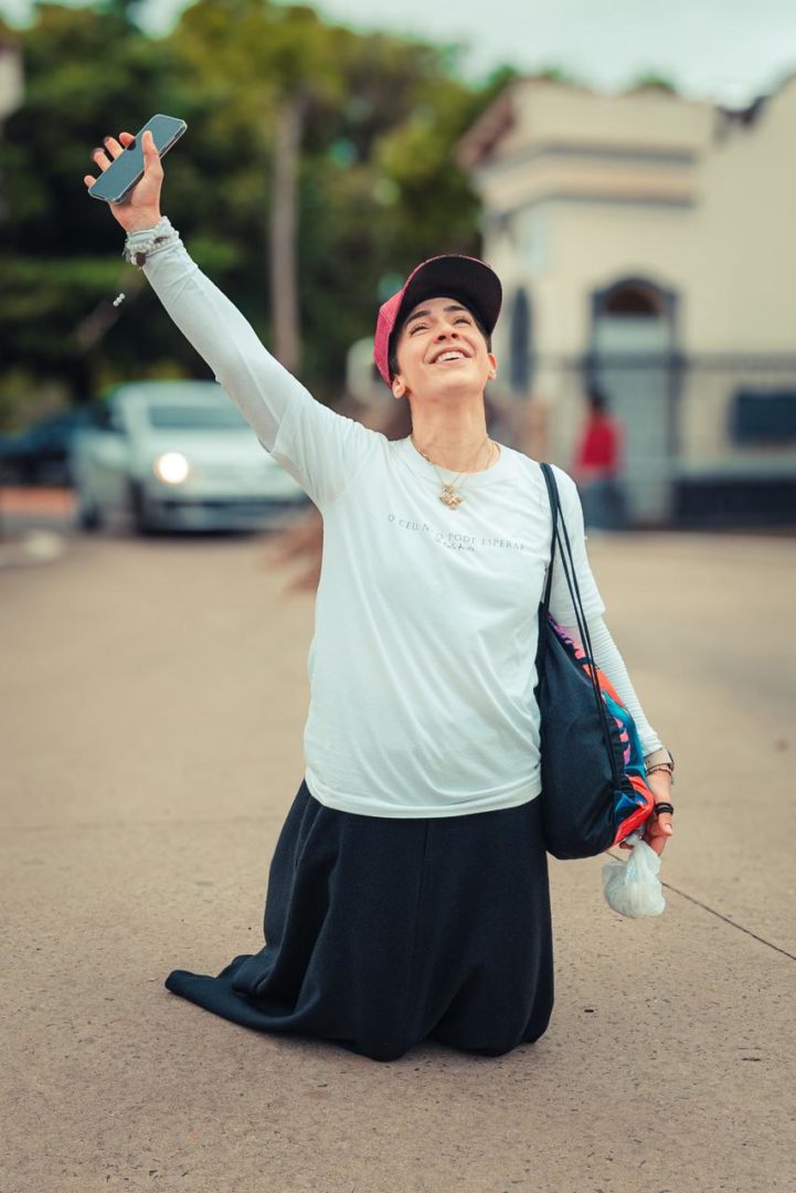 “Hoje vivi uma experiência que vai ficar guardada para sempre no meu coração. A Caminhada da Fé foi muito mais do que alguns quilômetros percorridos — foi um encontro com Deus, comigo mesma e com tudo o que acredito. A cada passo, senti a presença de Nossa Senhora Aparecida me conduzindo e de Jesus fortalecendo meu coração. Houve momentos de cansaço, sim… mas também momentos de profunda paz, onde parecia que o céu se abria só pra nos abençoar. Tive ao meu lado o meu amor e companheiro de vida, Rafael, que caminhou comigo com o mesmo propósito: agradecer, confiar e seguir firmes na fé. Porque quando Deus é o centro, cada passo se torna uma oração. Cheguei ao fim com o coração cheio de gratidão, lágrimas nos olhos e a certeza de que a fé realmente move montanhas. Hoje posso dizer: eu venci, porque Deus caminhou comigo!”