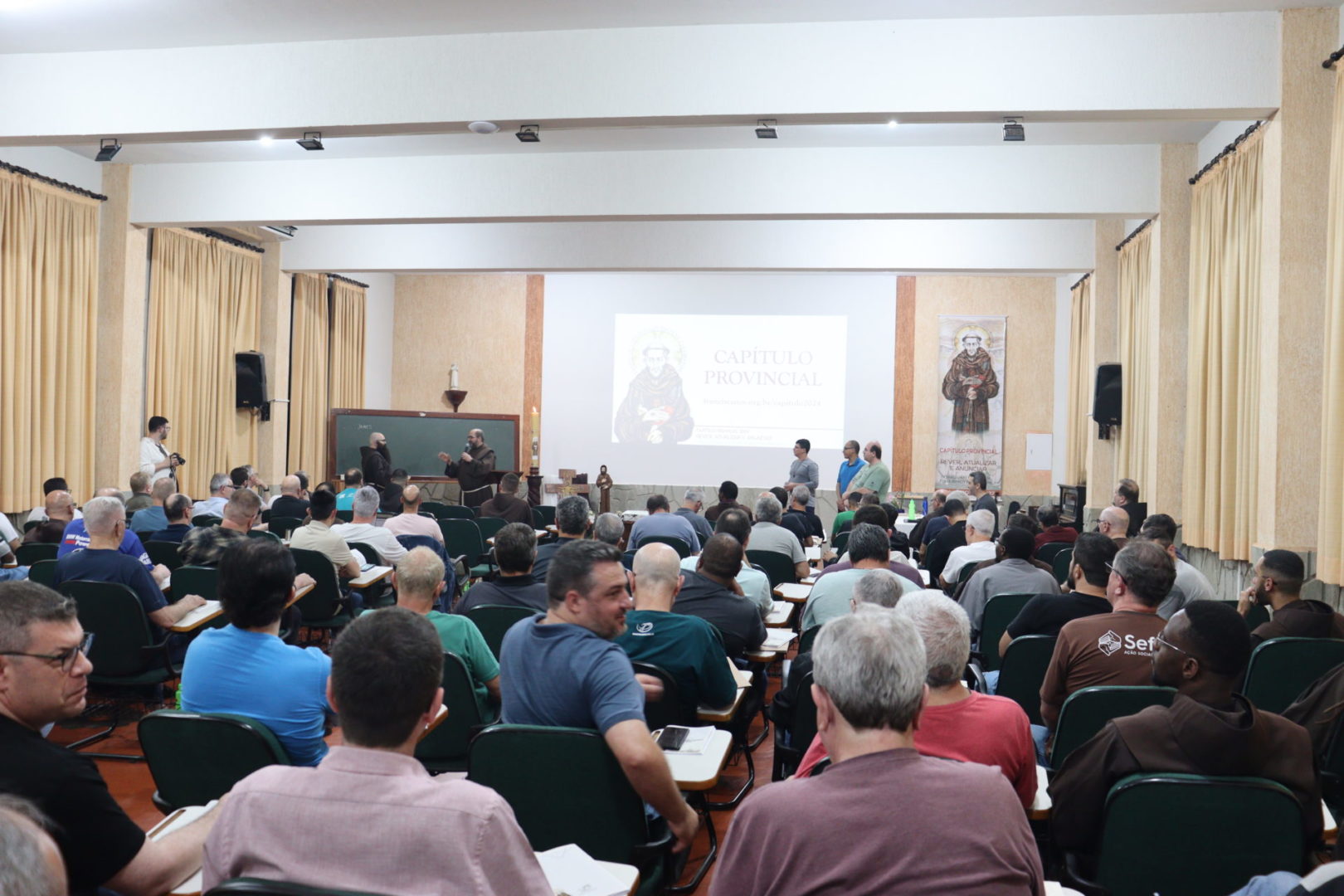 Nesta segunda-feira, 4 de novembro, os frades da Província Franciscana da Imaculada Conceição do Brasil reuniram-se para Rito da Abertura e Instalação do Capítulo Provincial 2024. A cerimônia iniciada às 20h30 contou com momentos marcantes, nos quais destacamos a entrada dos símbolos da Província: vela com o desenho do Capítulo, Estatutos Particulares e Plano de Evangelização, acompanhados com canto “Salve Mestre”.