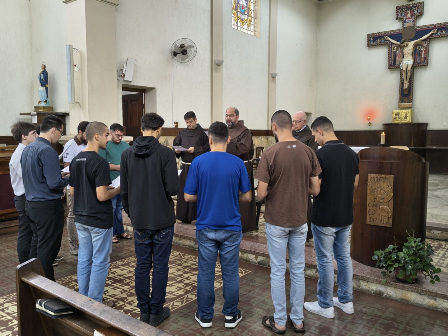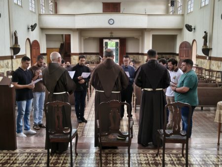 Na manhã do dia 21 de janeiro de 2026, durante a oração das Laudes, às 7h30, a Fraternidade viveu um momento de profunda alegria e significado com a admissão de dez jovens ao tempo do Postulantado na Ordem dos Frades Menores. A celebração aconteceu em clima de oração, simplicidade e fraternidade, como é próprio da tradição franciscana.