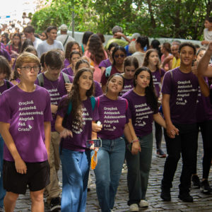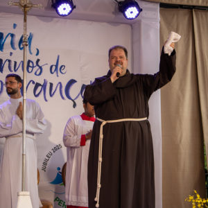 Frei Gustavo continuou, pedindo uma segunda salva de palmas para catequistas e lideranças que dedicam sua vida a acompanhar adolescentes na fé: “Mesmo não tendo mais a idade de vocês, a energia de vocês, essa gente faz um trabalho de herói e por isso merece a nossa gratidão, o nosso carinho e o nosso aplauso, todos os catequistas e aqueles que trabalham com os adolescentes. Muito obrigado”.