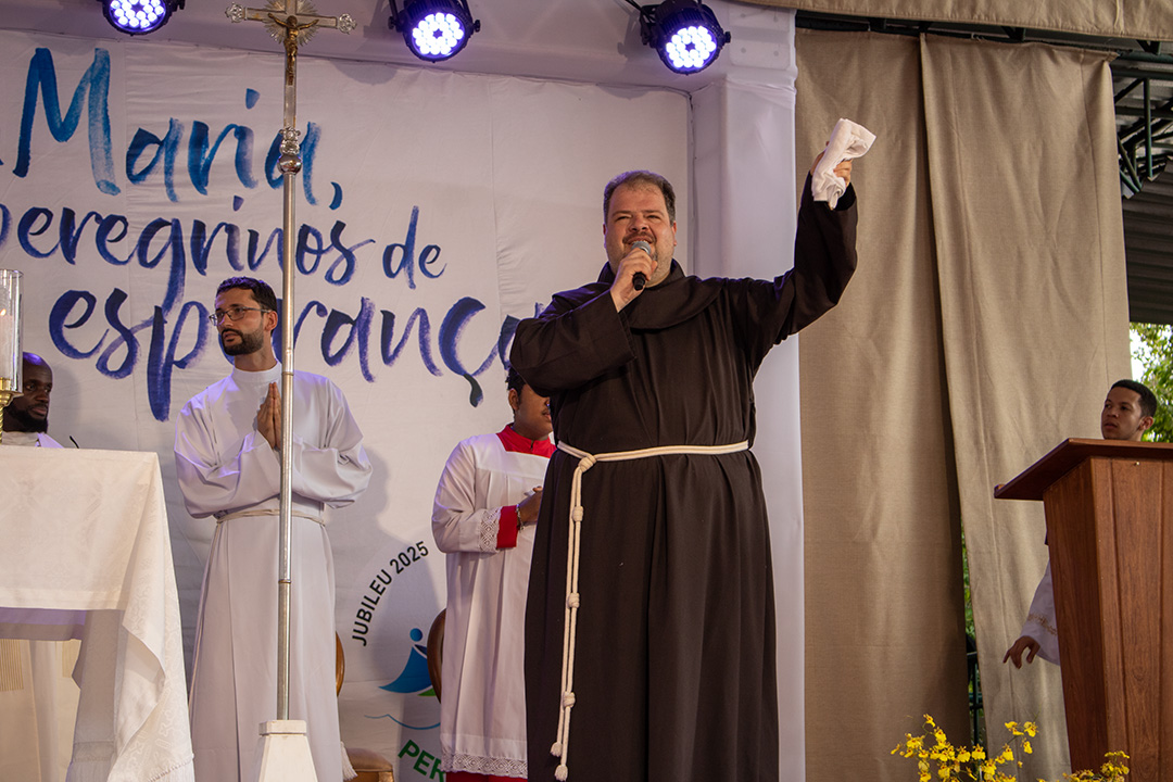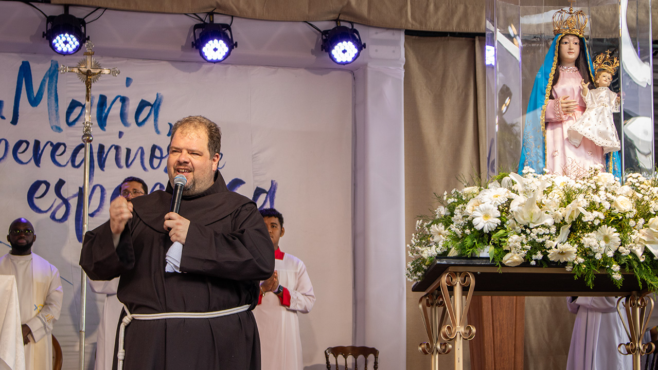 Logo na acolhida, Frei Gustavo Medella, vigário provincial da Província da Imaculada Conceição, emocionou a todos com palavras que arrancaram sorrisos, aplausos e lágrimas de gratidão: