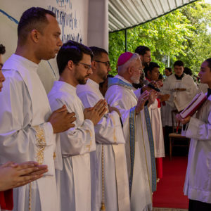 Antes de concluir, Dom Andherson convidou todos a fazerem um instante de silêncio, respondendo a Deus: “Sim Senhor, contigo eu quero ir ao mundo inteiro, anunciar o Evangelho a toda criatura”.