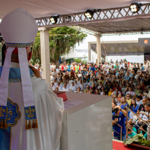 Dom Andherson fez um apelo para que os adolescentes vivam sua missão em casa, na escola, nas redes sociais: “Hoje, as pessoas estão com sede de Deus, sede de generosidade, sede de amor e compaixão, sede da ternura que vem da Mãe, sede de um olhar que nos alcança, onde parece que ninguém nos vê”.