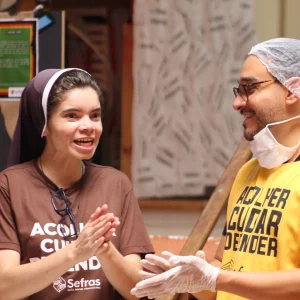 Felipe, que veio do Maranhão para passar uma semana como voluntário através da parceria do Sefras com o Anchietanum – Centro de Juventude da Companhia de Jesus (Jesuítas), também se emocionou com a experiência: “Esta é a minha primeira vez em São Paulo e em um voluntariado tão intenso. Participar do Chá do Padre tem sido uma experiência sensacional. Sou imensamente grato por tudo o que estou vivendo aqui.”