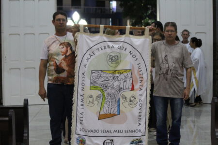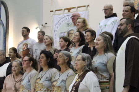 O momento de entrada foi marcado por um gesto simbólico: o acolhimento do banner do jubileu dos 800 anos do Cântico das Criaturas, que está em peregrinação pelas fraternidades franciscanas da OFS do Paraná. O cântico mariano entoado pela assembleia reforçou a devoção da Família Franciscana à Virgem Imaculada, “morada puríssima de Deus” e “mãe tão amada por São Francisco”.