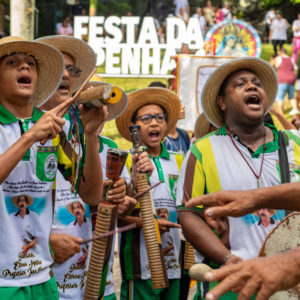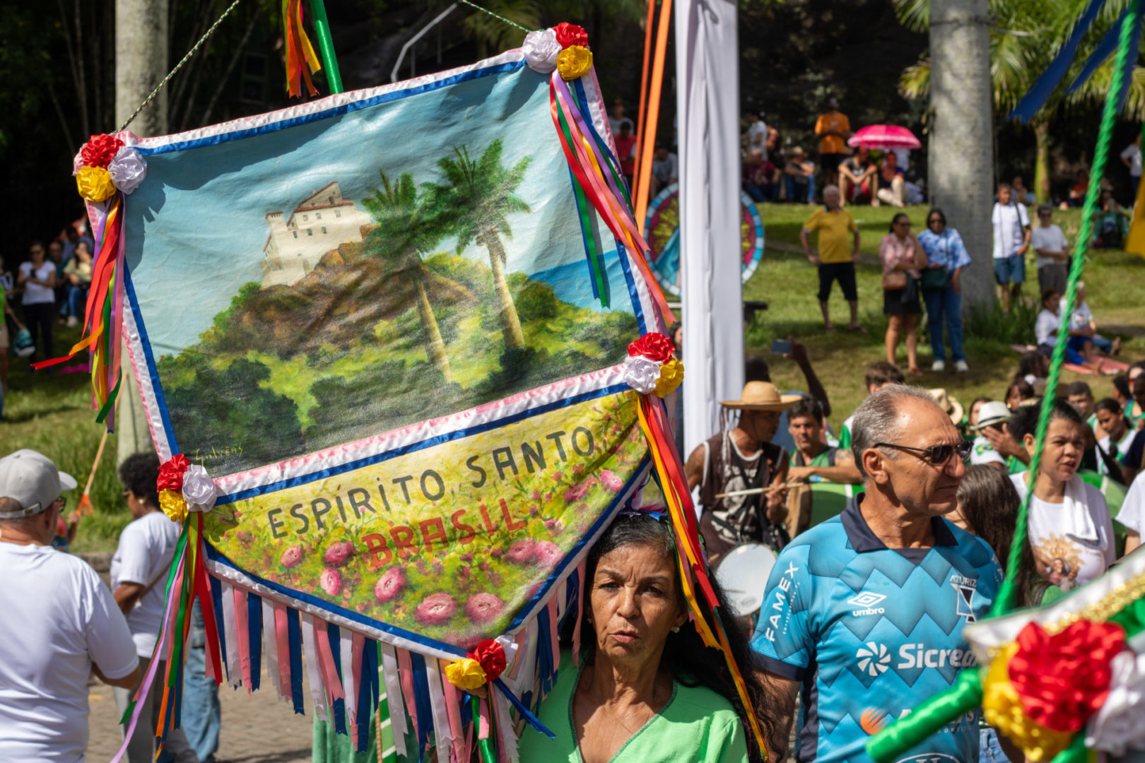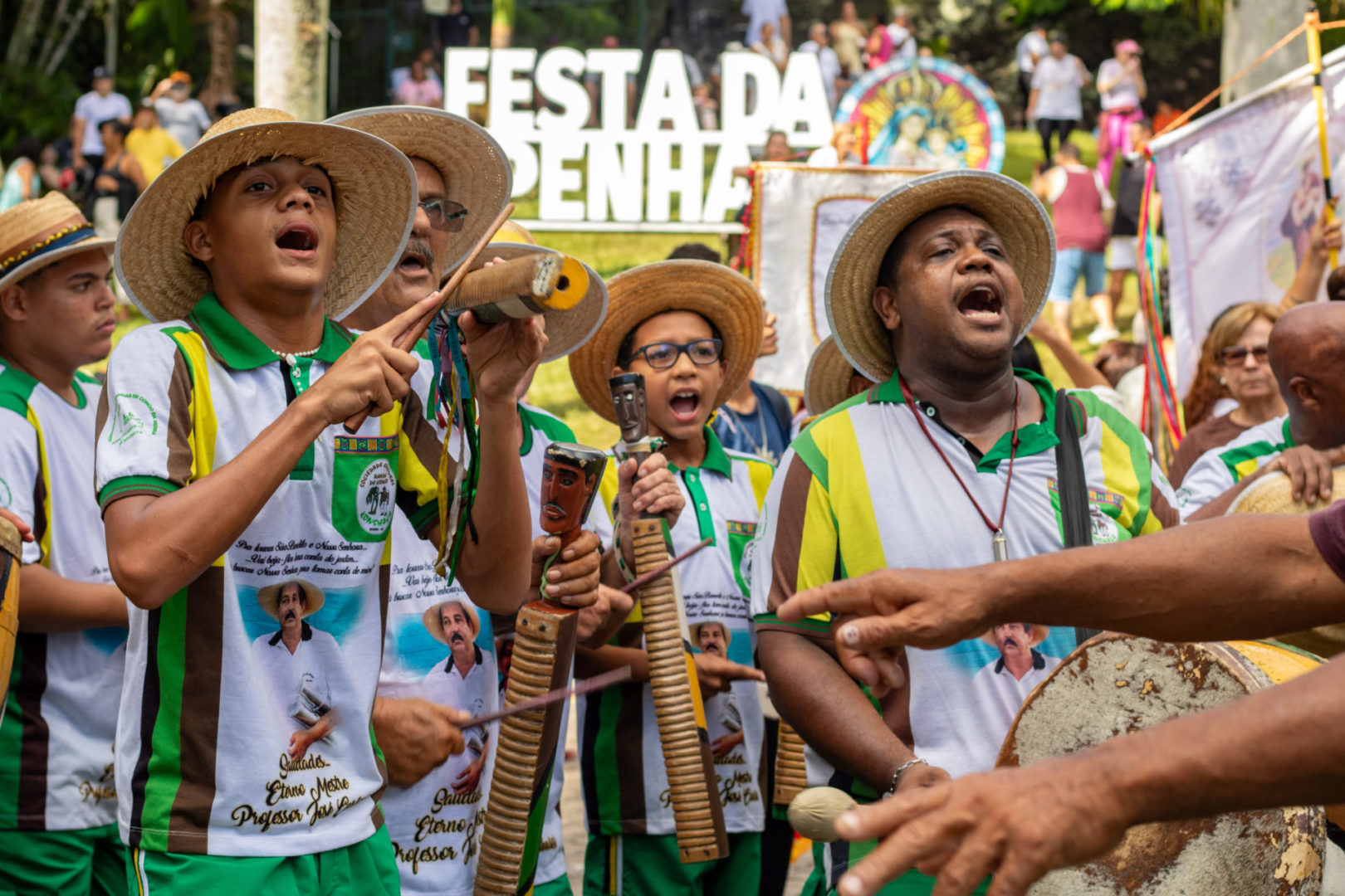 Já às 8h, a Romaria dos conguistas marcou mais um momento de fé e expressão cultural na Festa da Penha 2026, reunindo bandas de congo de diversas regiões do Espírito Santo em um grande cortejo até o Convento da Penha, em Vila Velha. Ao som dos tambores, casacas e cantos tradicionais, os conguistas subiram o convento levando consigo a força de uma tradição que atravessa gerações e se renova a cada ano como sinal de devoção à padroeira do Estado.