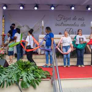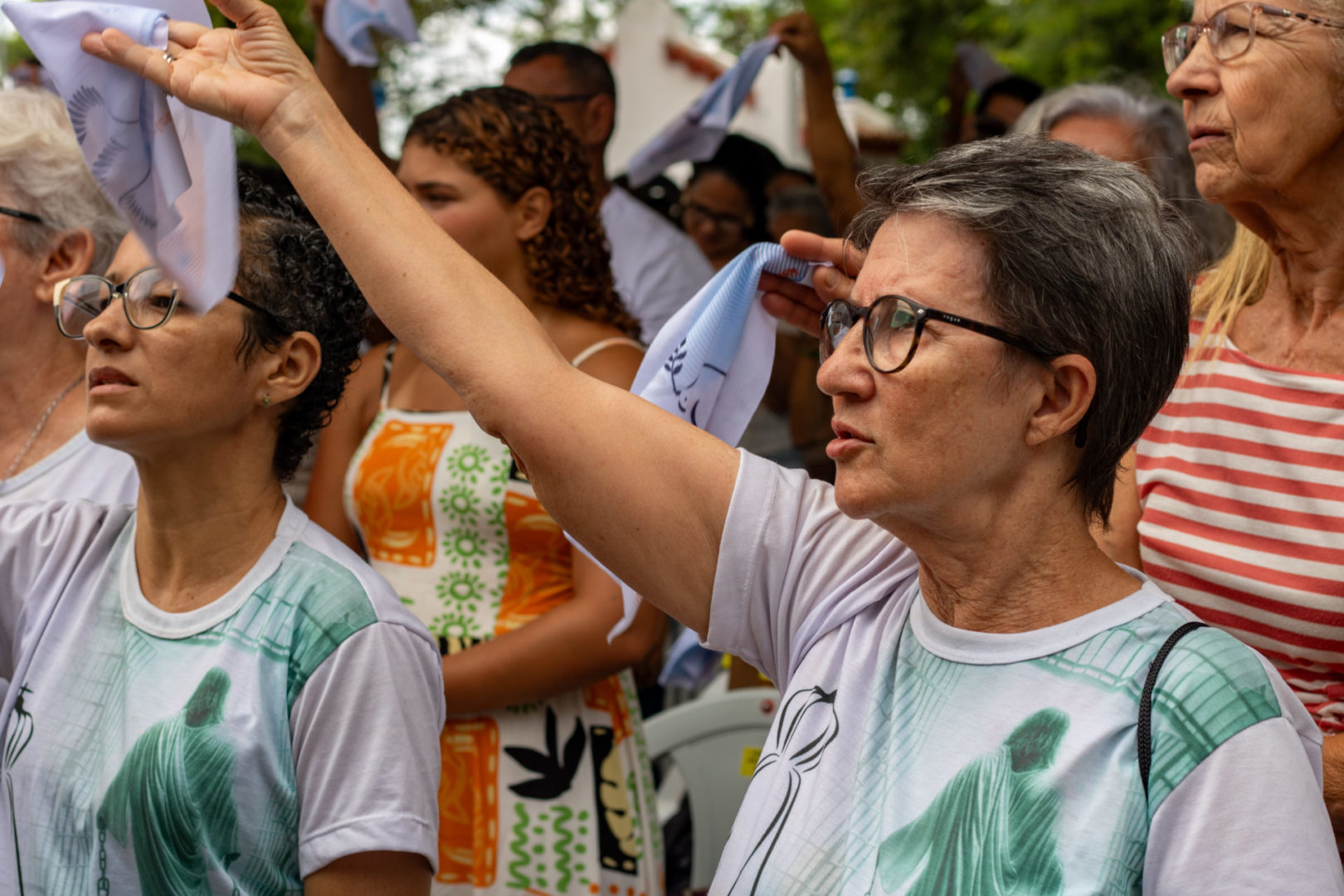 Ao final da celebração, um gesto simbólico marcou o momento: bandeiras da paz circularam entre os fiéis, reforçando o compromisso assumido. “Que a paz corra como um rio entre nós”, foi proclamado, enquanto a assembleia renovava o desejo de construir uma sociedade mais justa e fraterna.