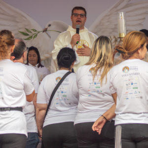 Dirigindo-se aos voluntários e participantes, Frei Evaldo reforçou o espírito de serviço e gratidão que marca a celebração, convidando todos à continuidade da missão. “Assim como Maria foi servidora, todos nós que aqui estivemos precisamos viver na lógica do serviço… tudo isso foi para o bem maior do anúncio do bem”, afirmou. Ao concluir, deixou uma mensagem de esperança e compromisso: “Nós não temos que dizer muito obrigado, nós temos que dizer até breve porque no ano que vem continuamos essa missão de anunciar o Reino de Deus. Que Nossa Senhora da Penha nos dê a graça de confiar e de viver esse tempo como um tempo de paz”, concluiu.
