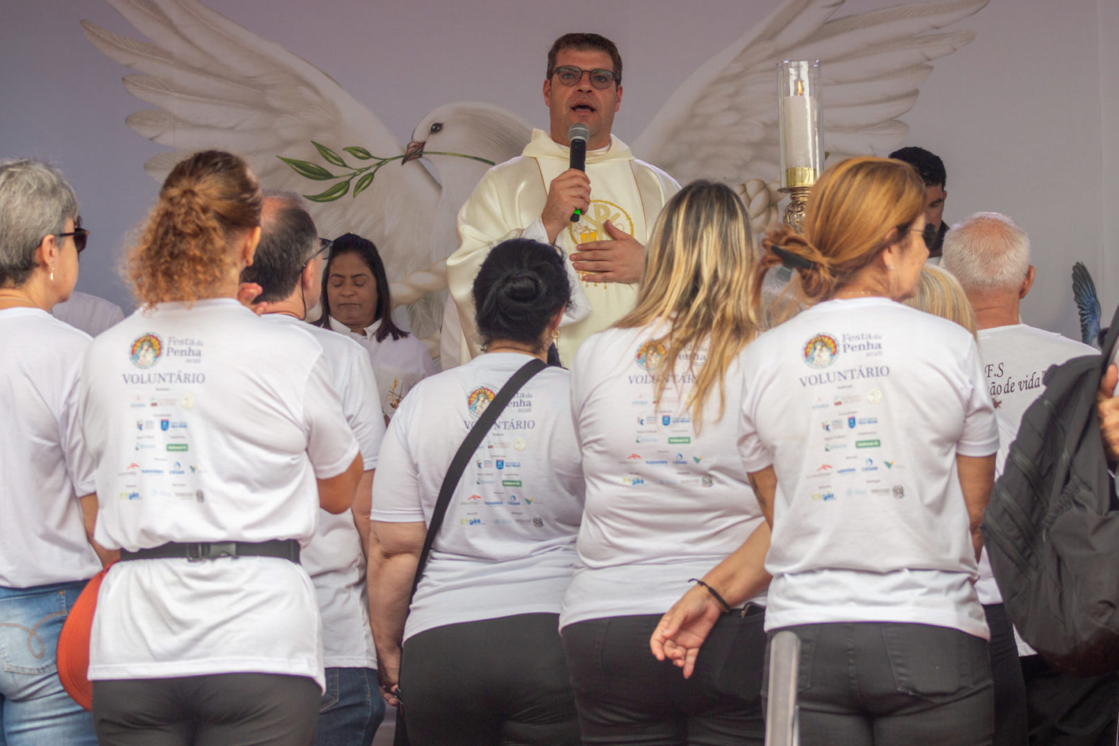 Encerrando a programação da manhã, a missa das 12h reuniu voluntários da Festa da Penha em um momento de gratidão. A celebração reconheceu o trabalho silencioso de centenas de pessoas que, ao longo dos dias, contribuíram para a realização da festa. Assim, a manhã do Dia da Padroeira foi marcada pela oração, pela diversidade das romarias, pela força da cultura popular, pela promoção das vocações e por um forte chamado à construção da paz.
