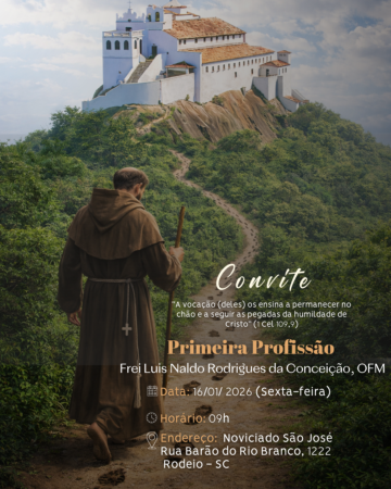 Com o coração em festa e renovada esperança, a Província Franciscana da Imaculada Conceição do Brasil convida toda a comunidade, familiares e amigos para a celebração da Primeira Profissão Religiosa de Frei Luis Naldo Rodrigues da Conceição, OFM.