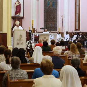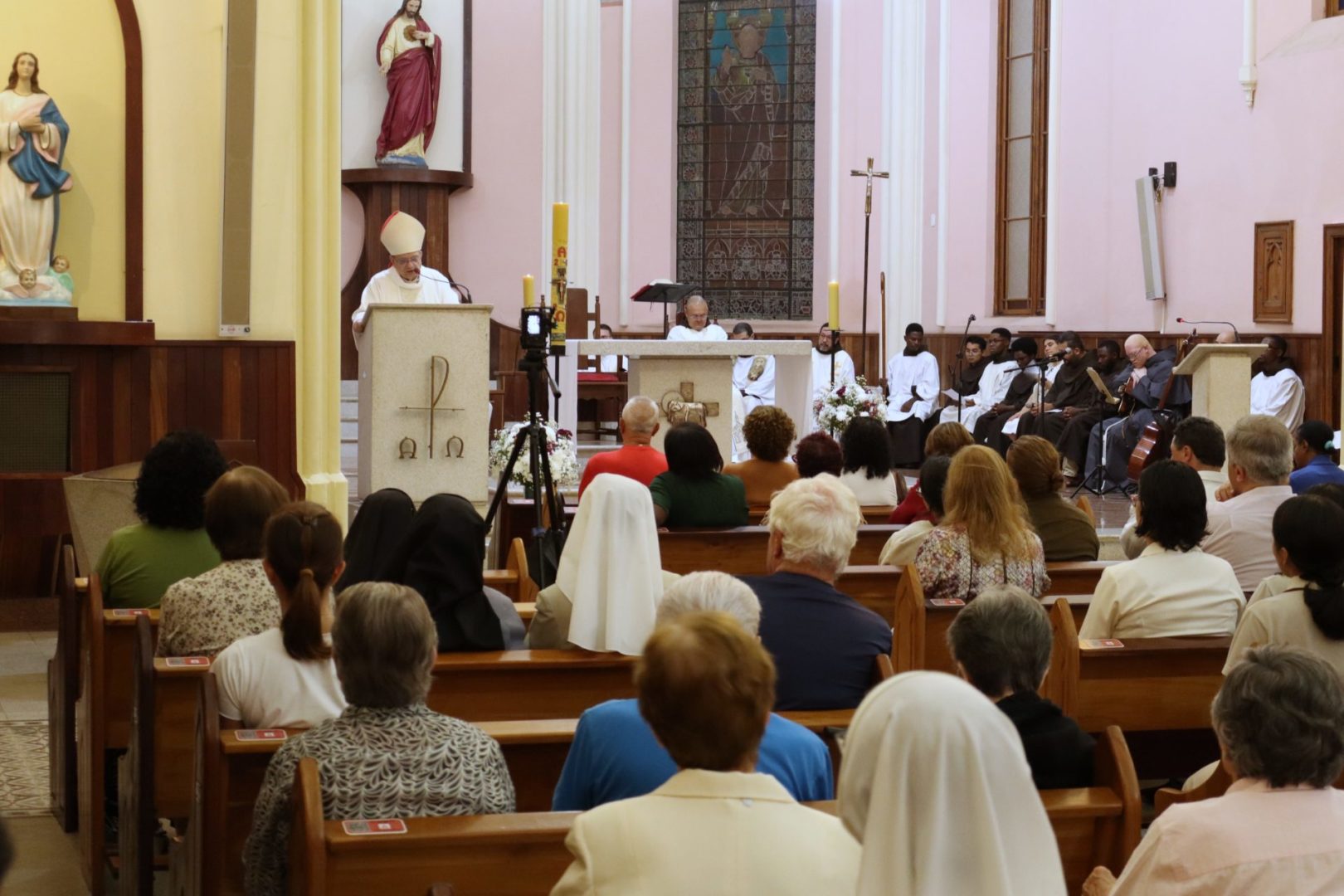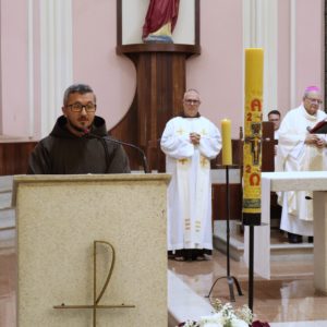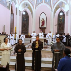 A celebração contou com a participação de representantes das ordens dos Frades Menores, Conventuais, Capuchinhos, Franciscanos Seculares e congregações femininas, como as Irmãs Franciscanas do Amparo e de Nossa Senhora dos Anjos, além de formadores e seminaristas do Seminário Diocesano.