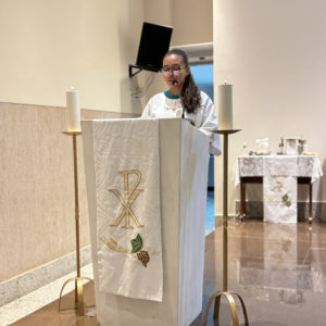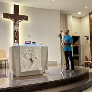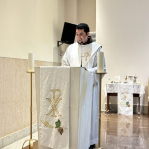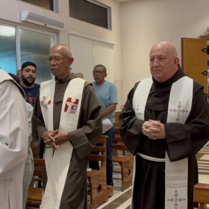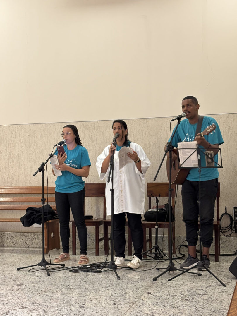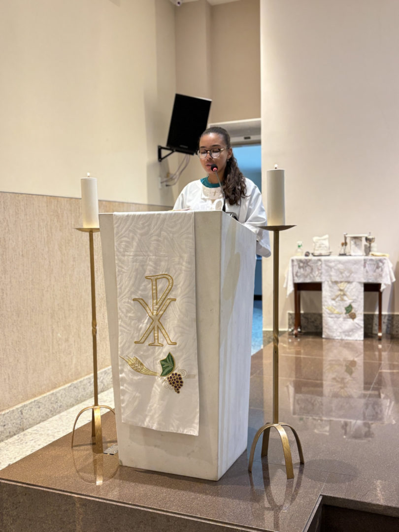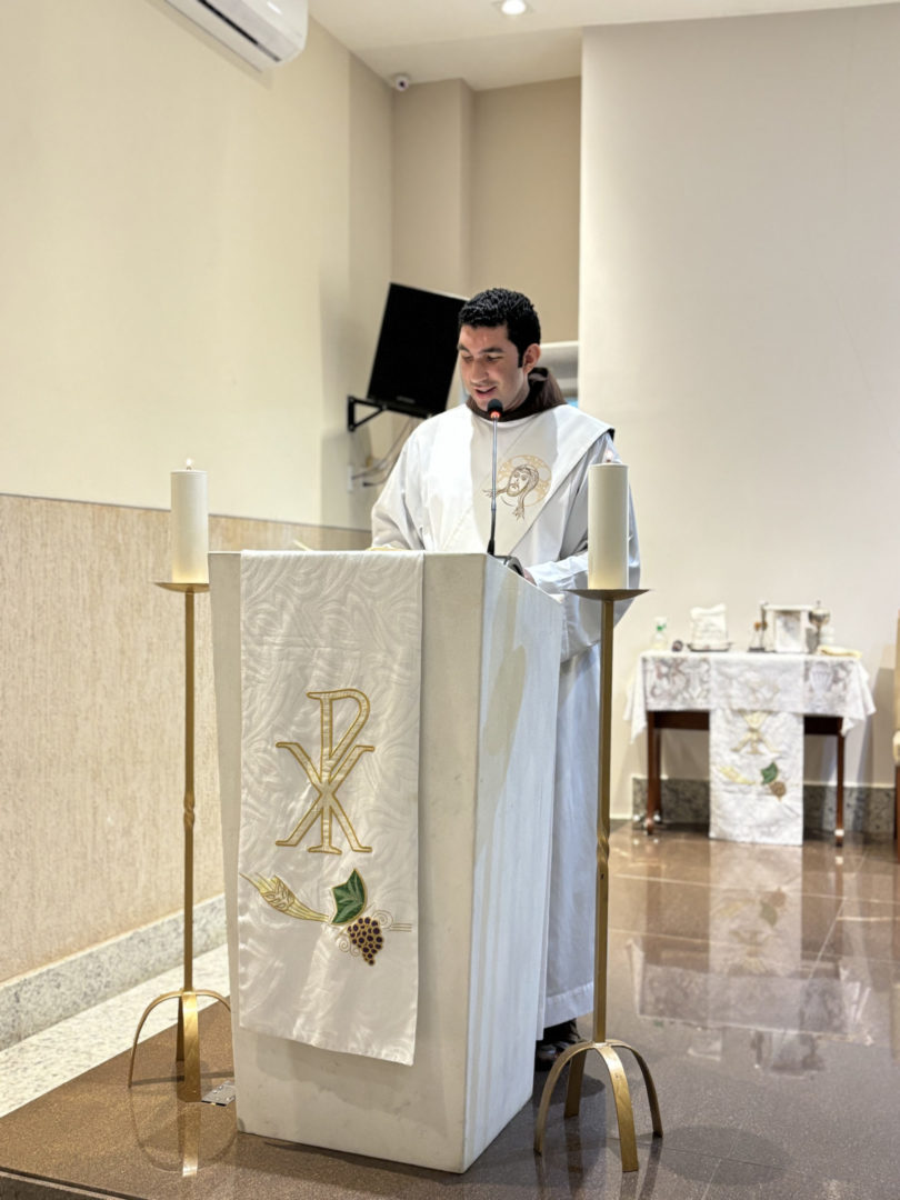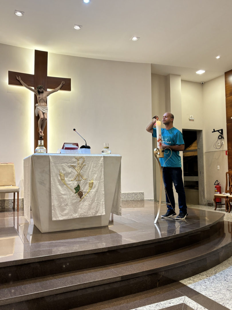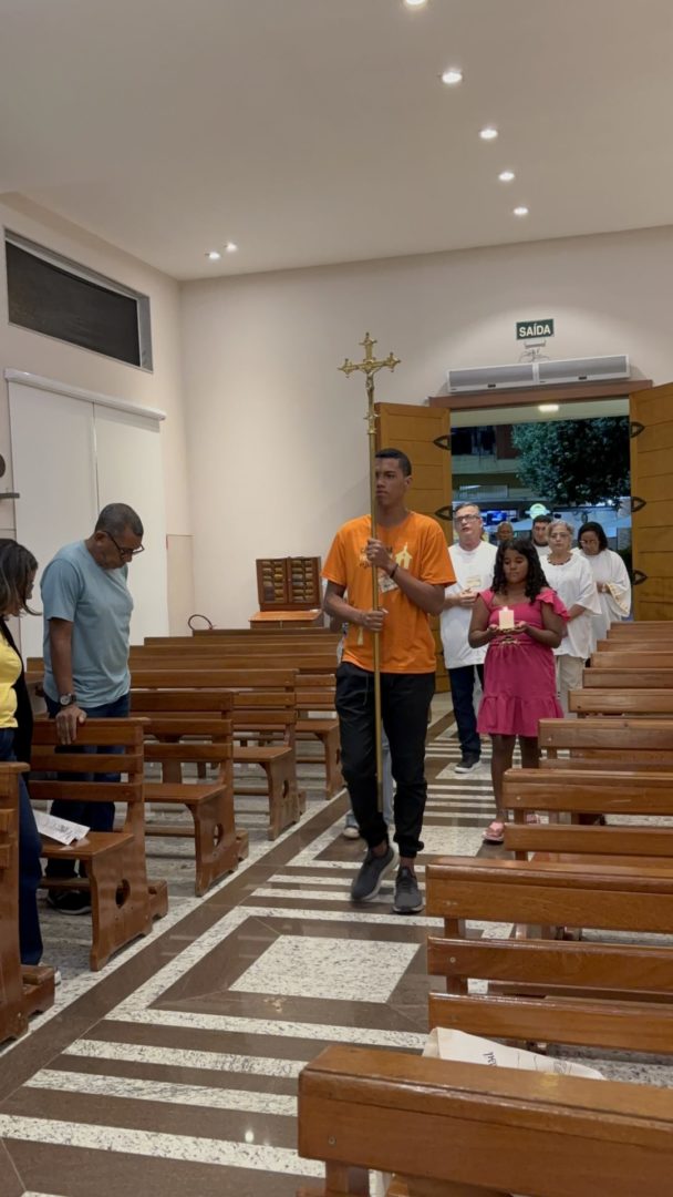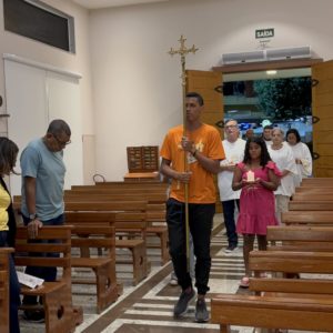 Ao cair da tarde, os jovens e os fiéis da Comunidade São Vicente se reuniram para a Celebração da Santa Missa, presidida por Frei Vitório e concelebrada pelo pároco Frei Pedro de Oliveira Rodrigues e pelo diácono Frei David Belineli.