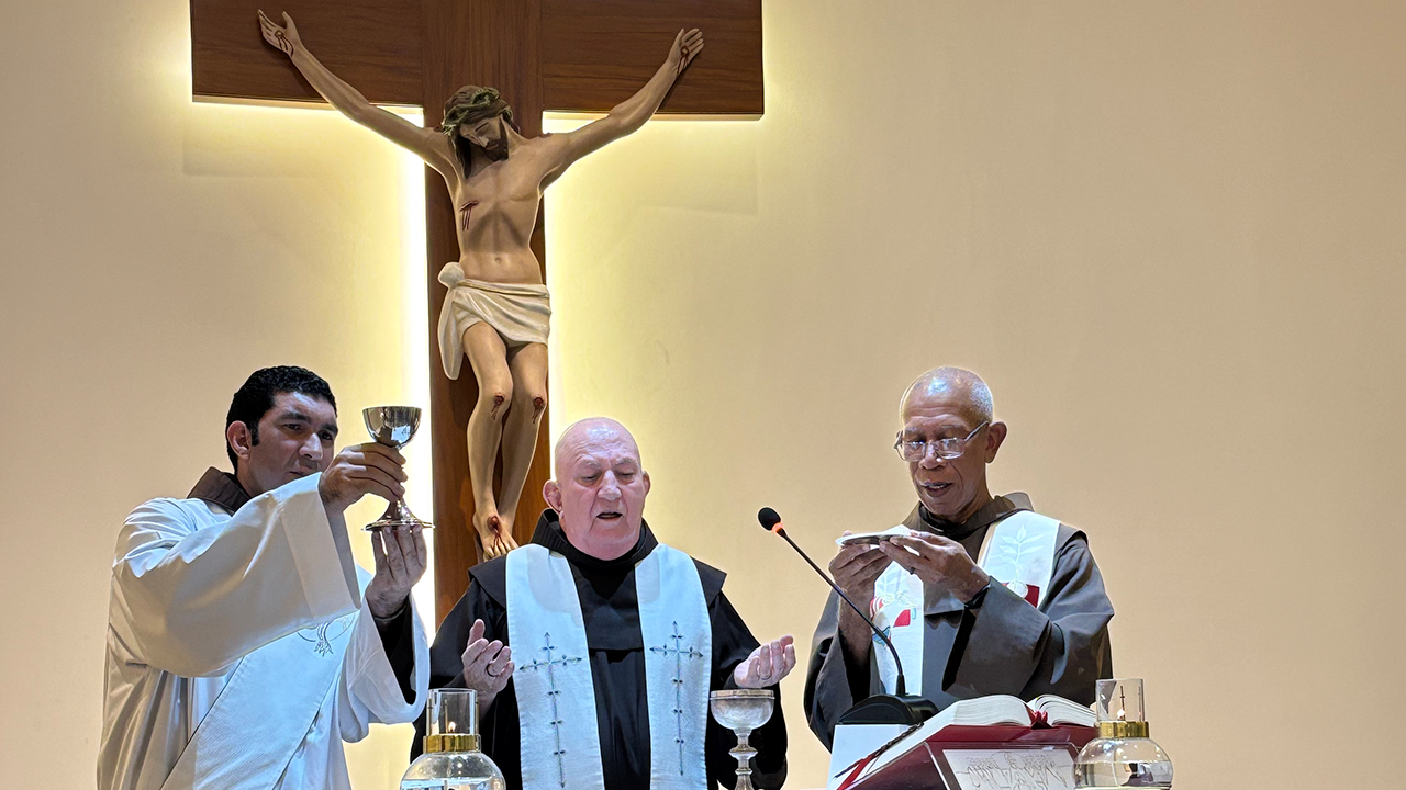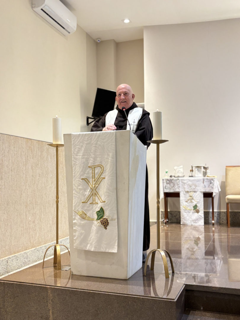 Na homilia, Frei Vitório refletiu sobre o 5º Domingo da Páscoa, enfatizando que “o caminho significa a dinâmica da existência: a não estagnação da vida. Vida em movimento, que atravessa fronteiras e abre caminhos”. Citando o livro dos Atos dos Apóstolos, lembrou as peregrinações de Paulo e Barnabé e o martírio dos primeiros cristãos, exortando à firmeza na fé mesmo em meio às adversidades: