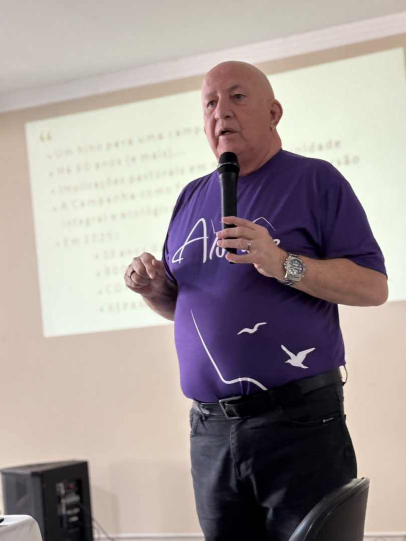 No domingo, a programação retomou às 7h30 com animação e café. Frei Vitório iniciou a manhã recordando o cuidado com a “casa comum”, alertando para a dependência excessiva do celular em detrimento do contato com a natureza e com Deus: