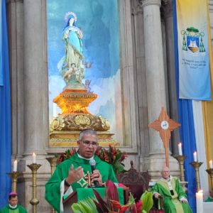 Por isso, disse o bispo, “somos convidados neste ano a sermos peregrinos da esperança, aqueles que envolvidos pelo Espírito de Deus vão ao encontro dos irmãos. Levar o amor, a fraternidade, a misericórdia, a compaixão, o cuidado, o cuidado com a vida, o cuidado com a dignidade da pessoa humana.” Por isso, disse o bispo, “a grande responsabilidade em nossa vida, como batizados e batizadas, como discípulos e discípulas missionários de Jesus Cristo, somos chamados a um posicionamento realmente profético, autêntico, que nos faz cada vez nos lançar para águas mais profundas. E assim, verdadeiramente deixar que a vocação que Deus concedeu a cada um de nós possa crescer, possa desabrochar, possa frutificar.”