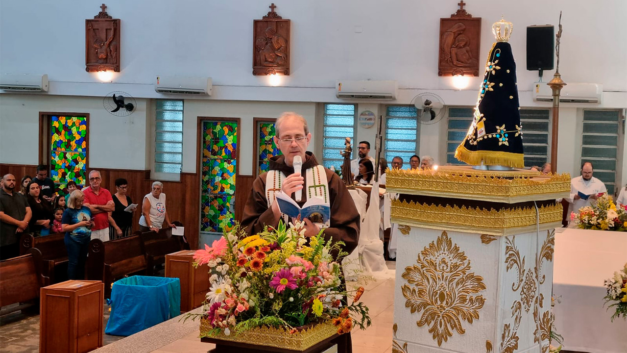 O Vigário provincial, Frei Gustavo Wayand Medela, se uniu ao povo de Nilópolis para louvar Nossa Senhora Aparecida e presidir a Celebração Eucarística, no terceiro dia da novena. Fundamentado pelo tema “Com Maria, acolher a Palavra de Deus, presença real de Jesus“, o frade destacou a importância do “sim” de Maria, gesto que fez da Palavra eterna de Deus uma realidade entre nós.