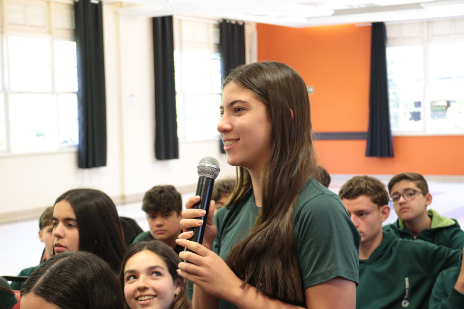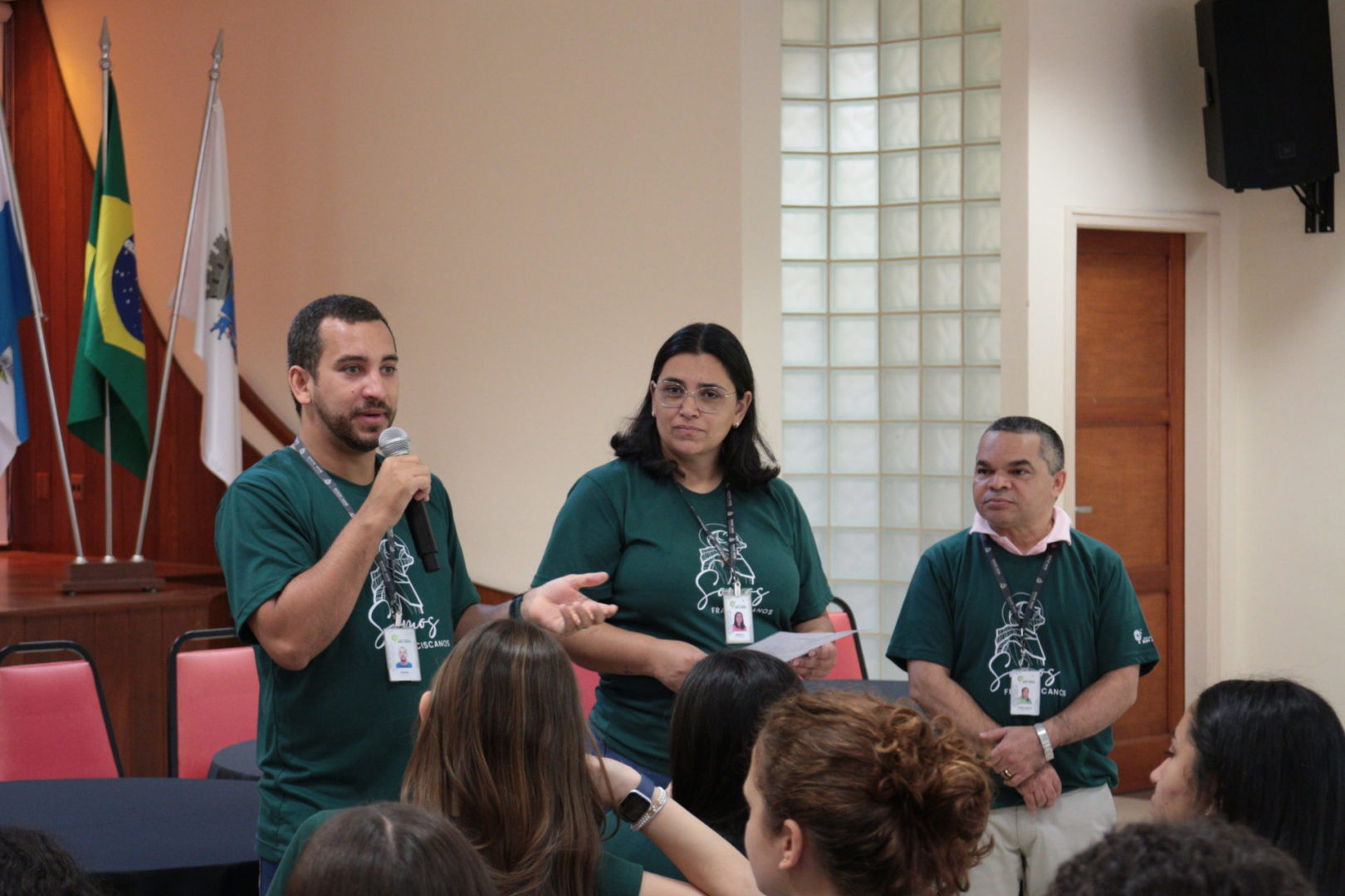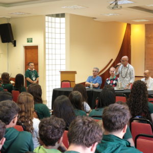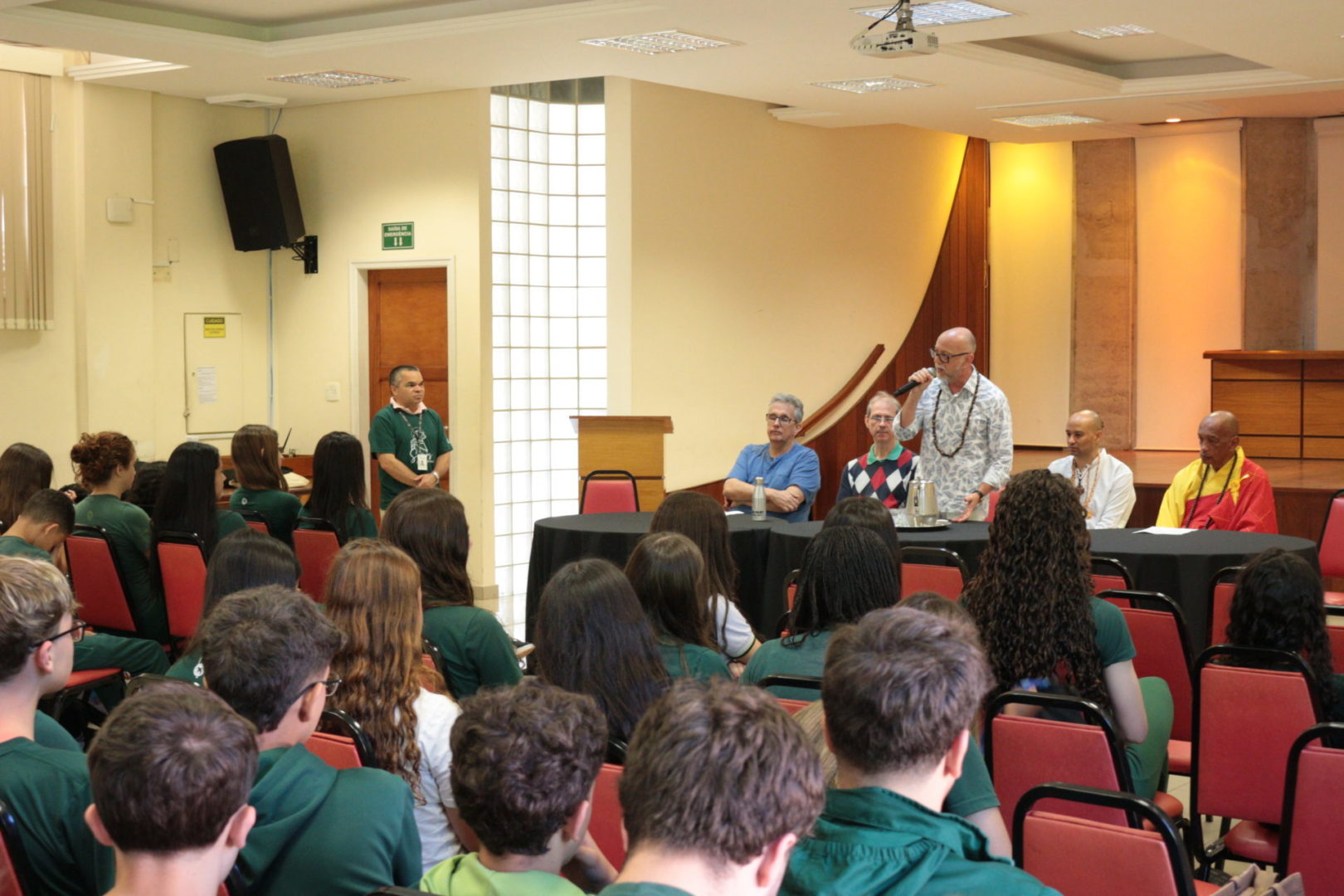 A manhã começou com a acolhida dos alunos, professores, gestores e assessores pedagógicos, marcada por um clima fraterno e de curiosidade. Em seguida, foram apresentados os convidados representantes de cinco tradições religiosas: