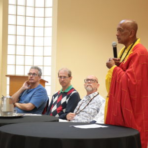 Na sequência, cada representante apresentou os princípios e fundamentos de sua tradição, oferecendo aos alunos uma visão introdutória de seus sistemas de crença e práticas. O momento despertou grande interesse, e os estudantes puderam fazer perguntas, tanto gerais quanto específicas, demonstrando curiosidade e abertura ao diálogo.